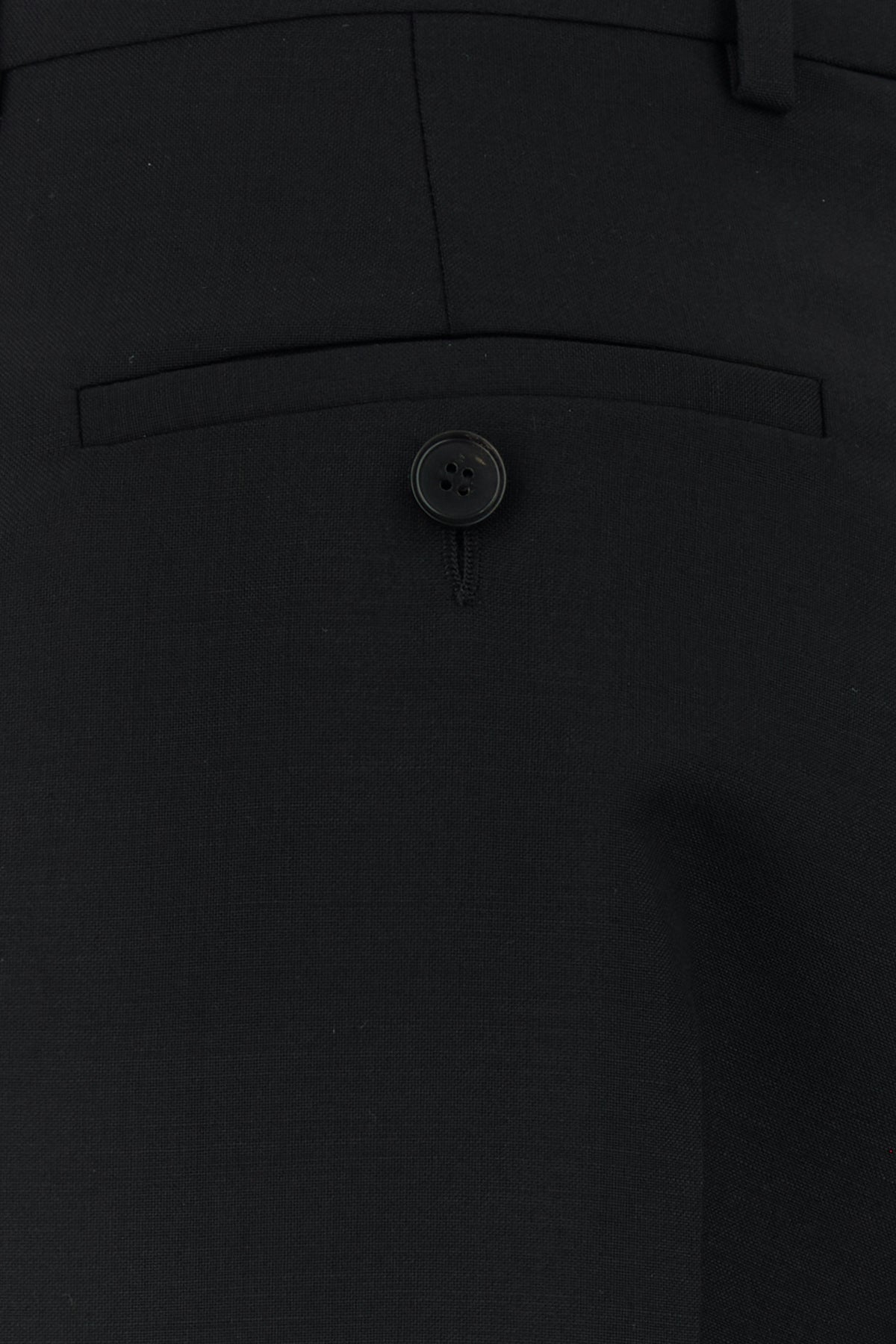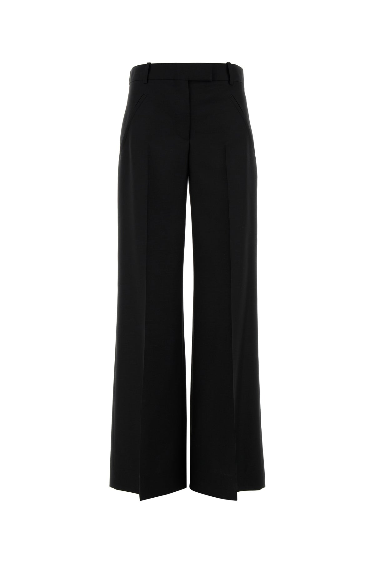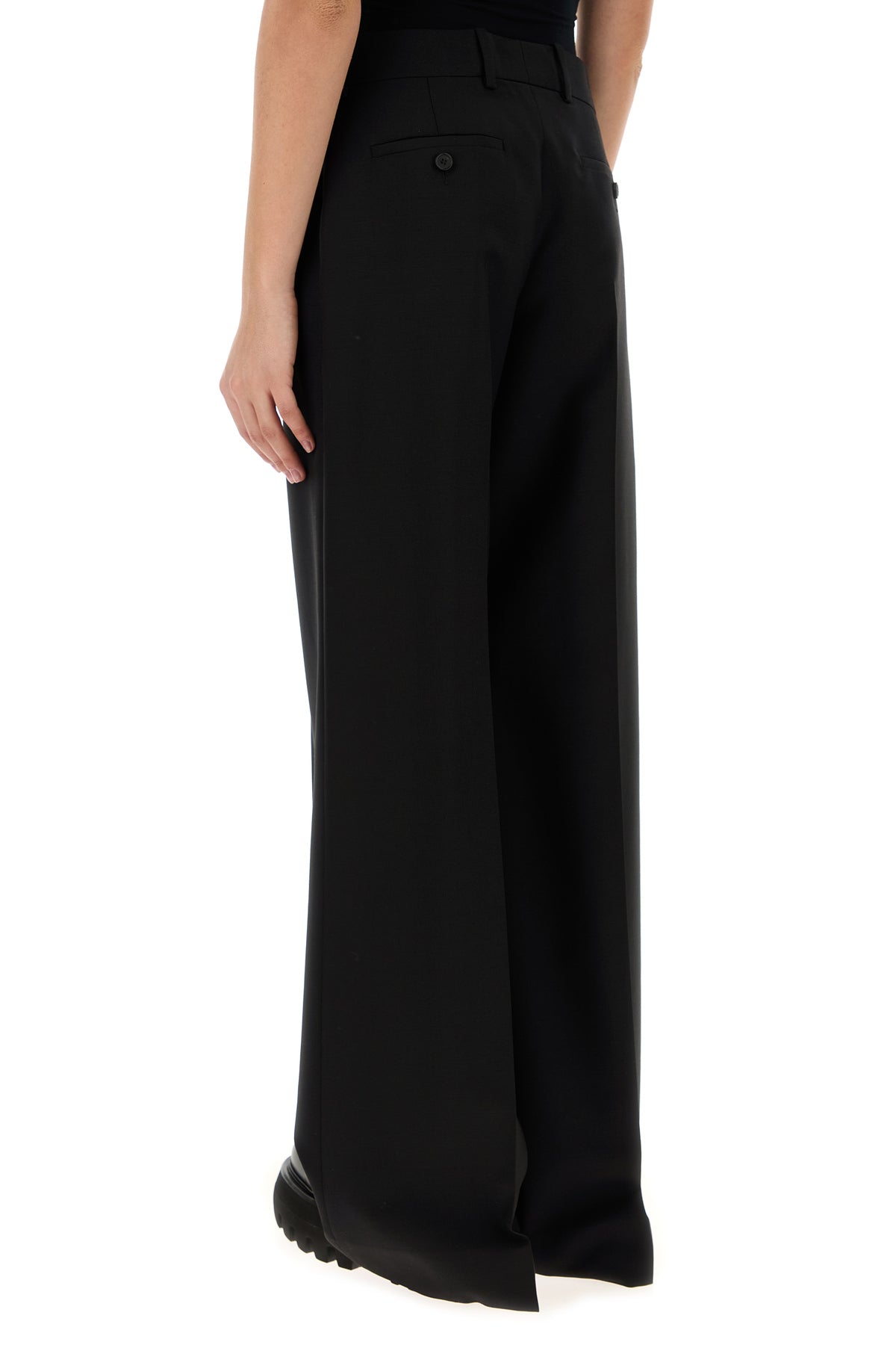 Wide-leg pant realized in wool and mohair characterized by concealed zip, hook and button closure.