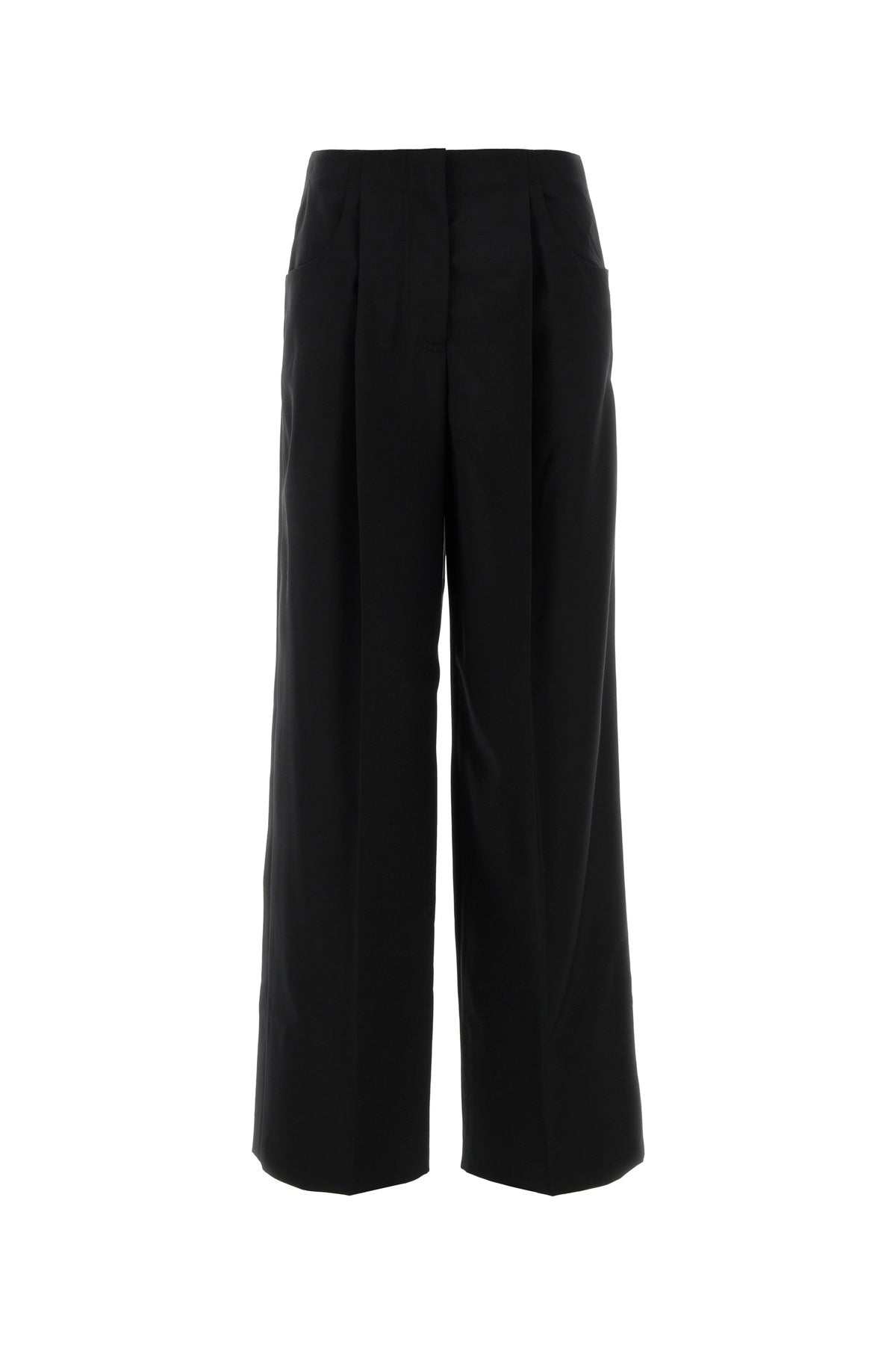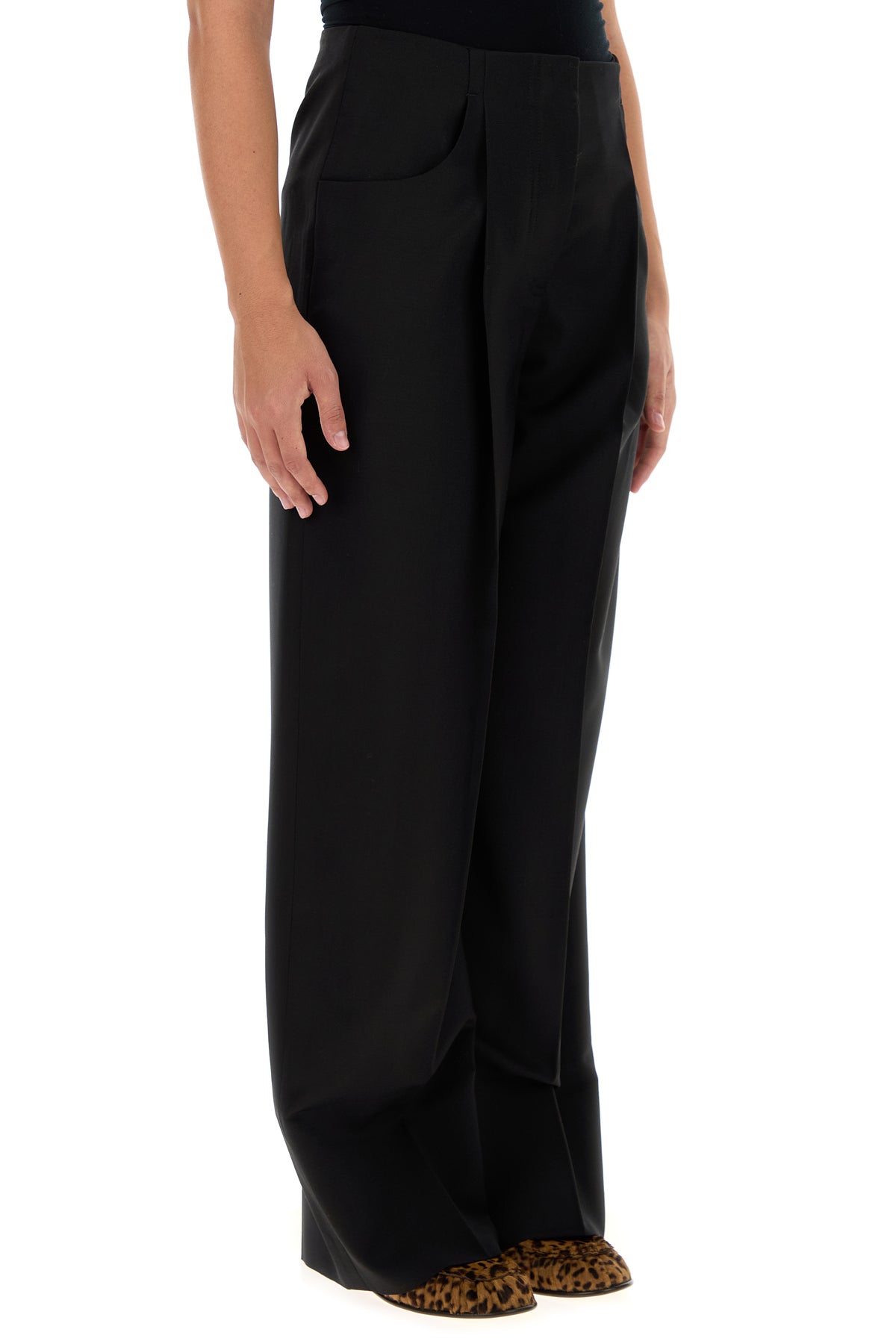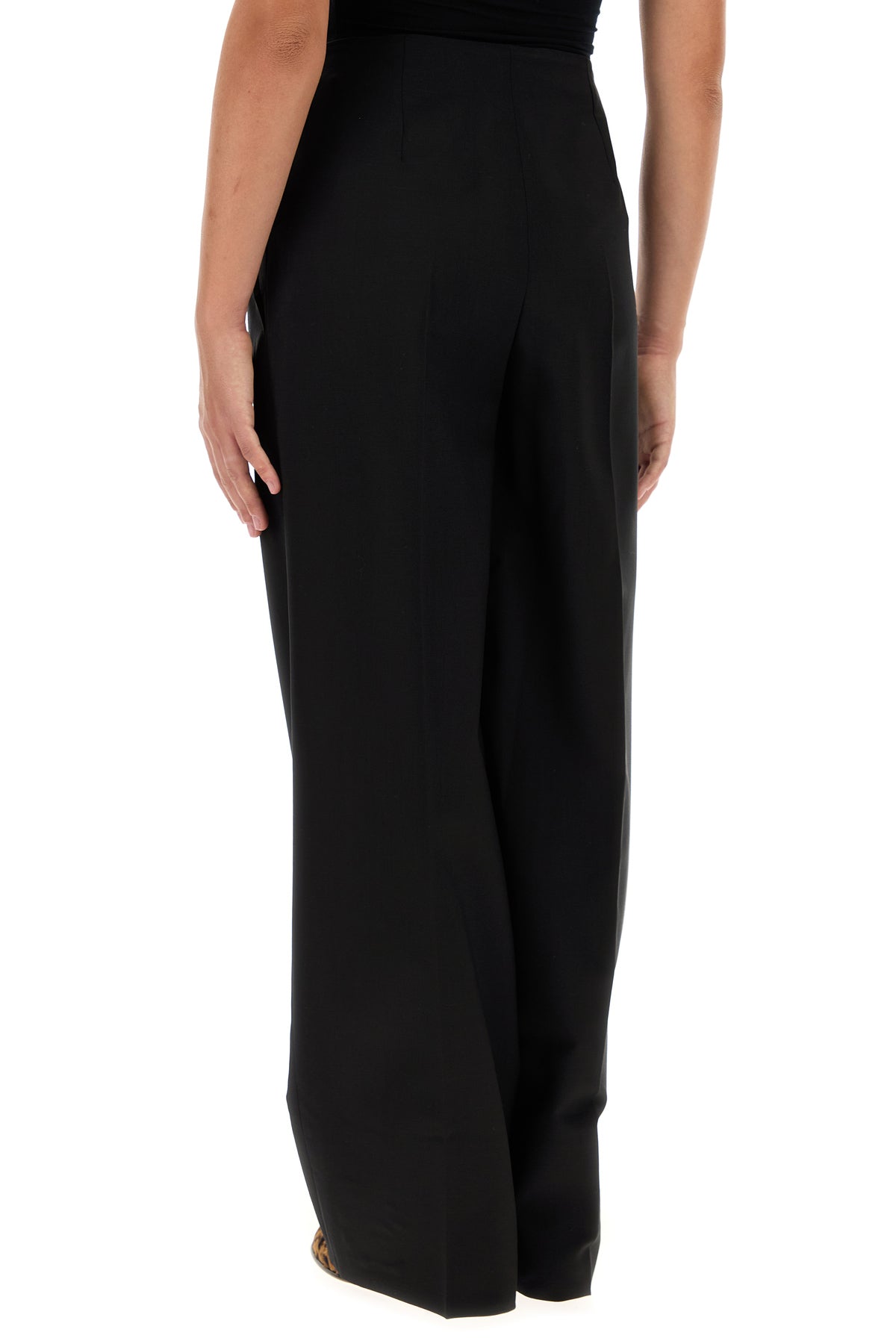 Black wool blend wide-leg pant