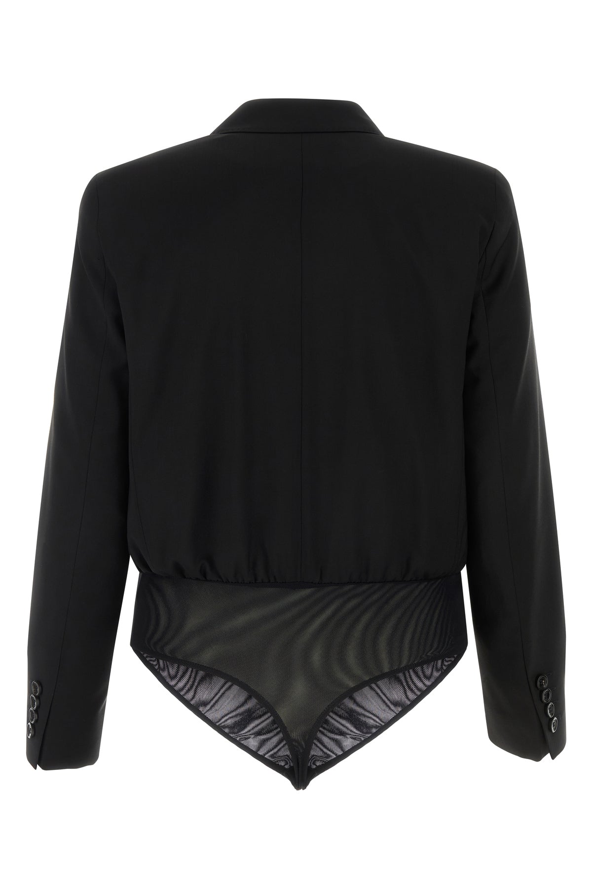 Bodysuit realized in pure virgin wool characterized by peak lapels enriched by decorative buttons at the front.