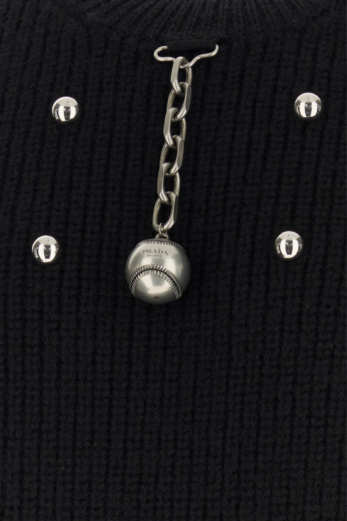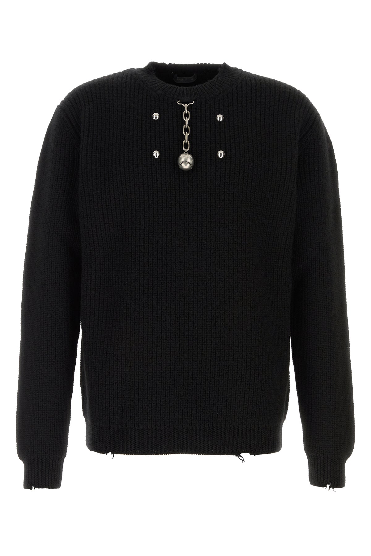 Sweater realized in pure virgin wool enriched by metal studs and metal detail at the front.
