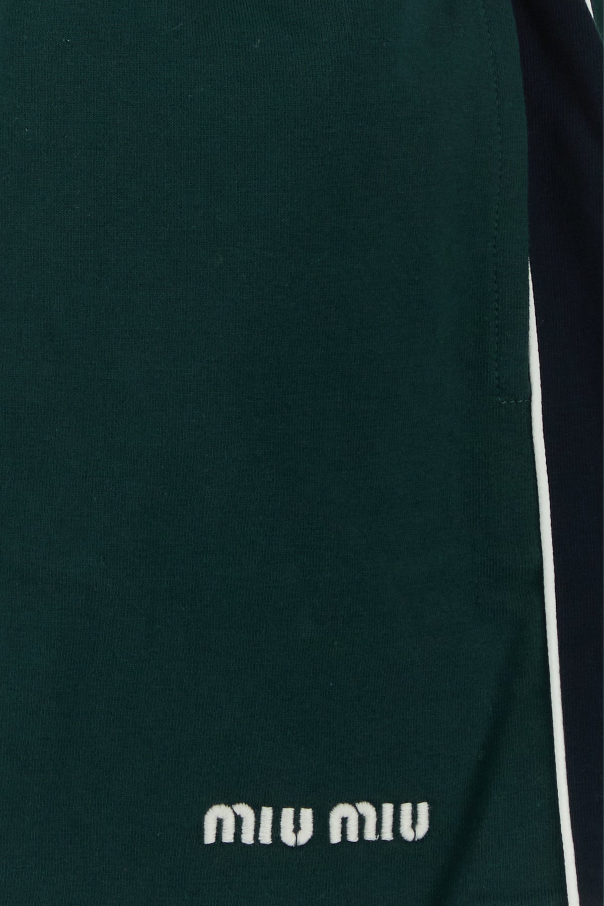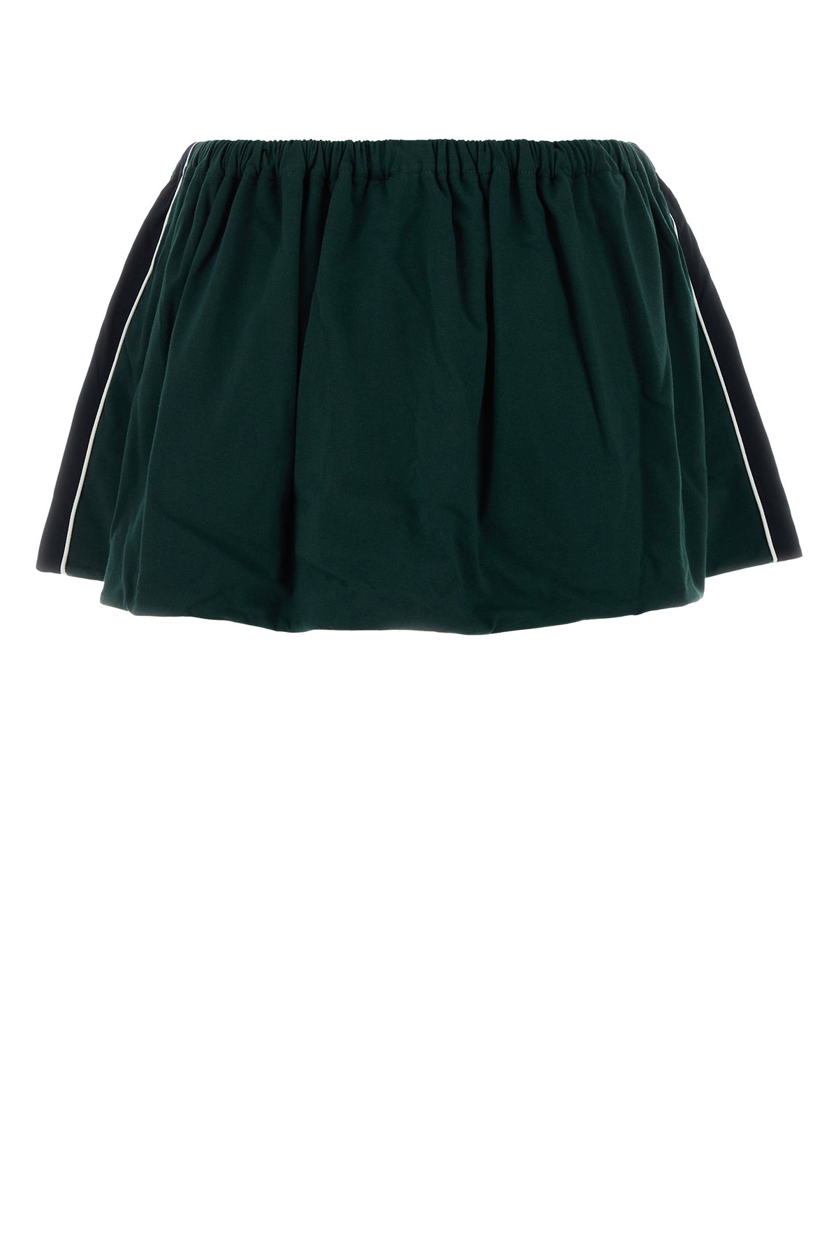 Flared mini skirt realized in pure cotton characterized by embroidered logo on the hemline.