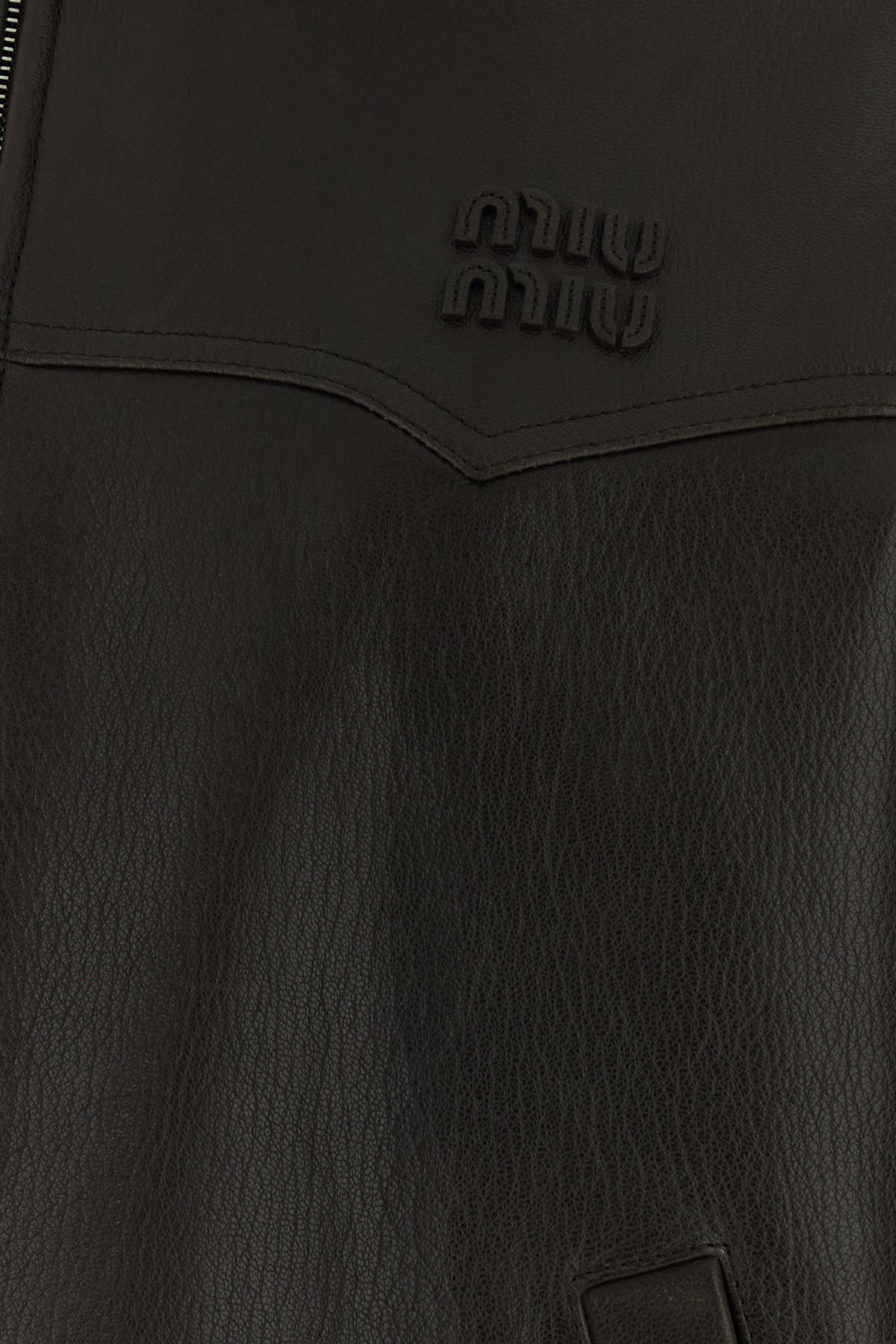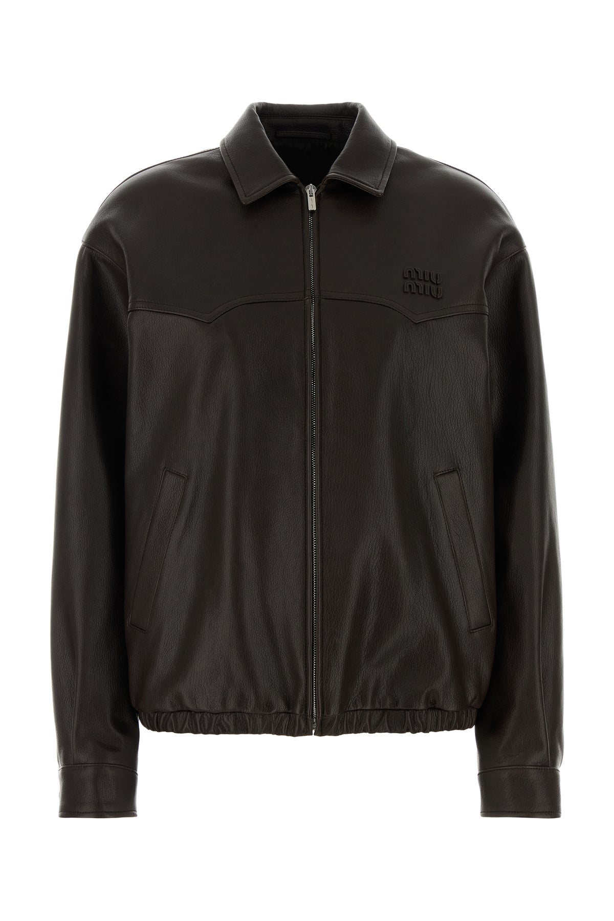 Jacket realized in pebble ovine leather enriched by logoed patch on the chest.