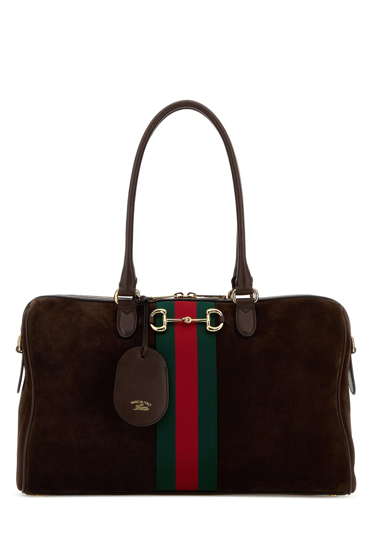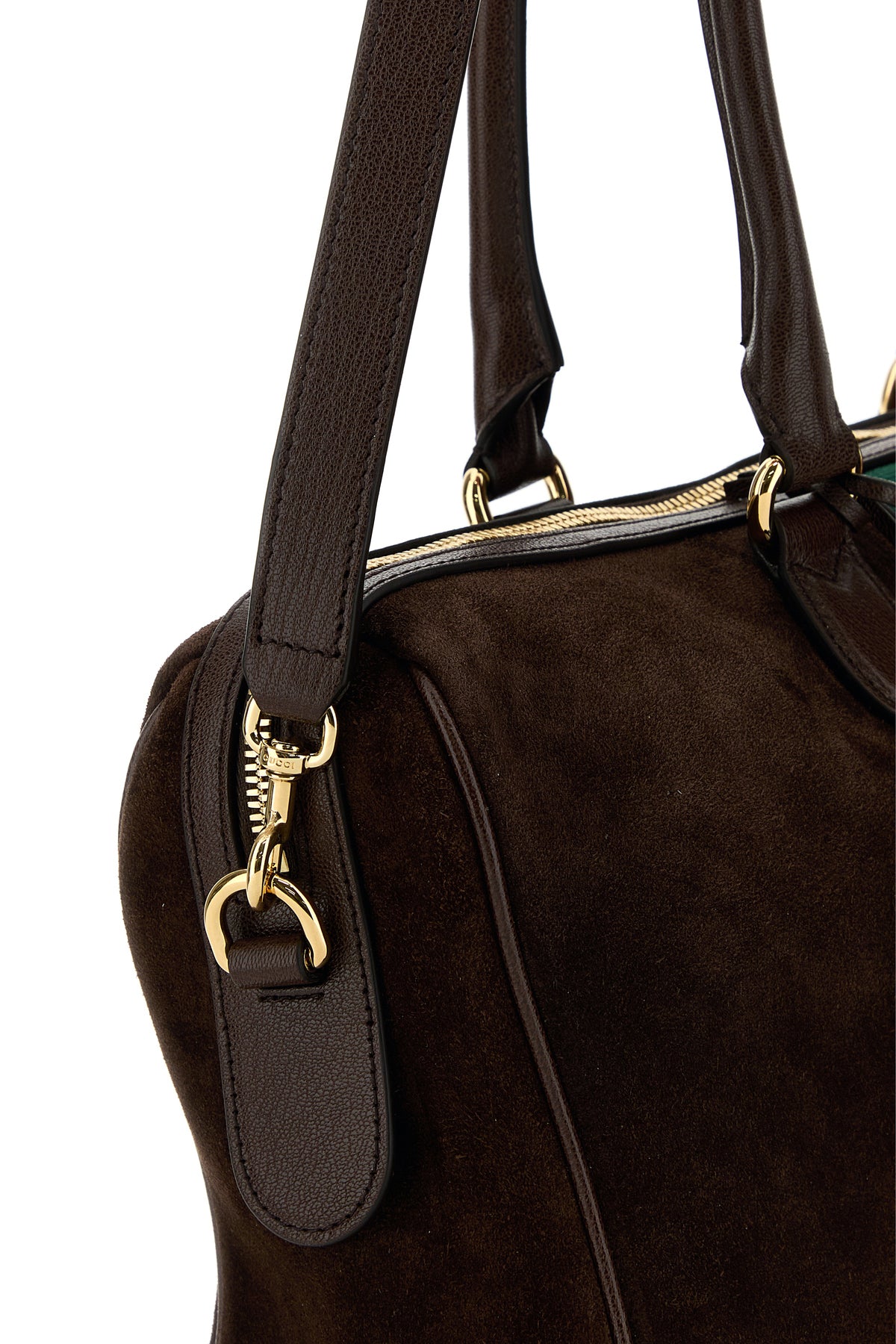 Shopping bag realized in suede enriched by Web patch and Horsebit metal detail.