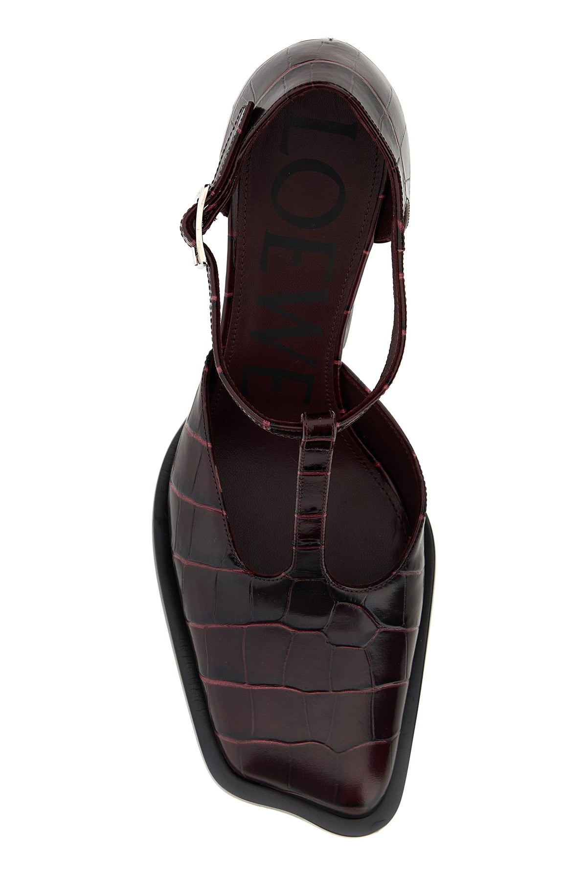 Pumps realized in crocodile motif embossed calf leather.