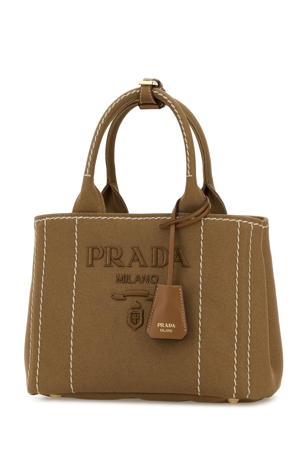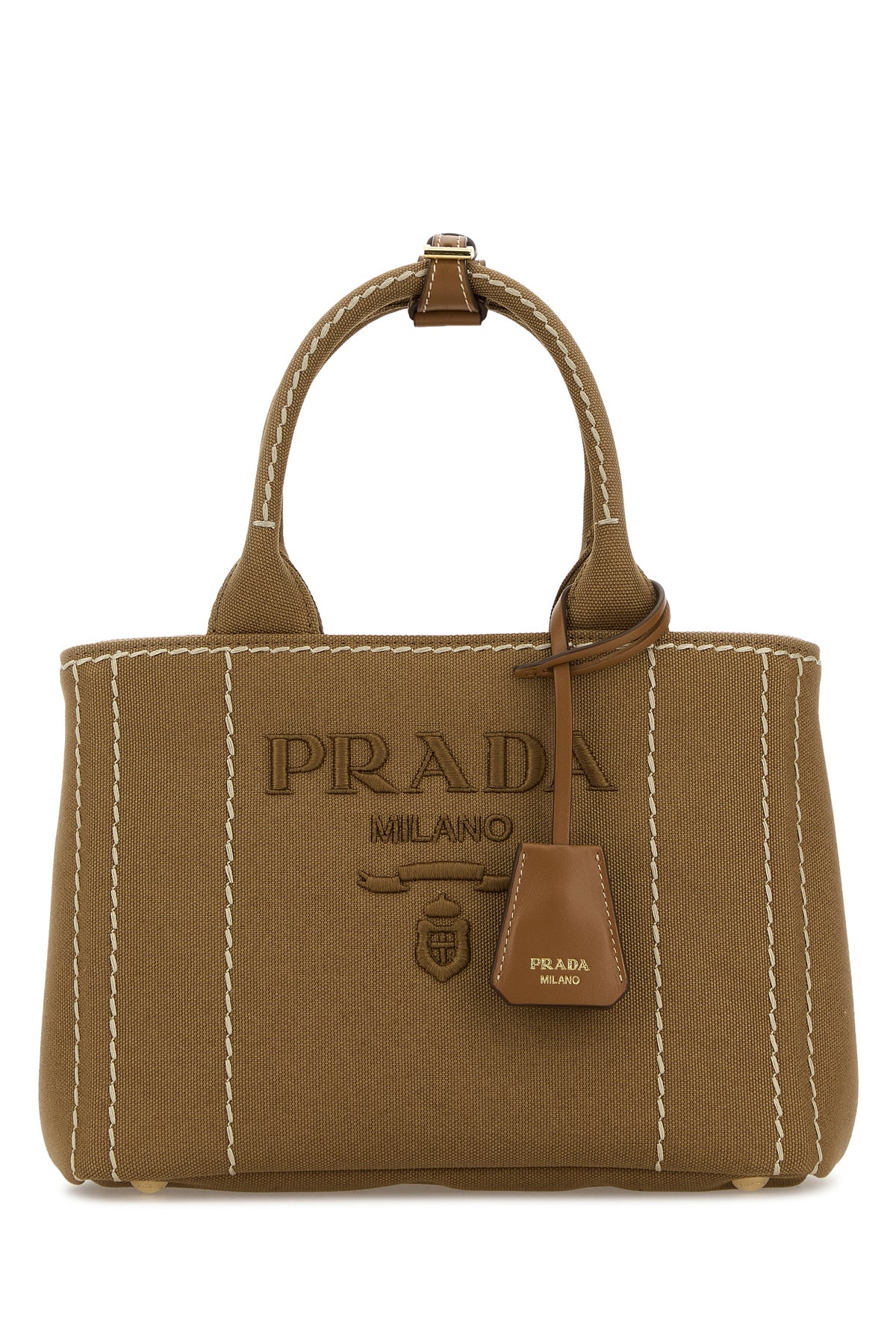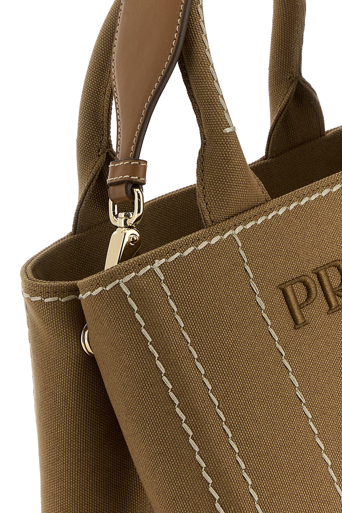 Handbag realized in canvas characterized by tonal embroidered logo at the front.