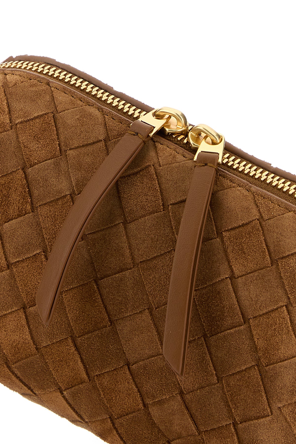 Crossbody bag realized in calf suede characterized by iconic Intrecciato motif on the entire surface.