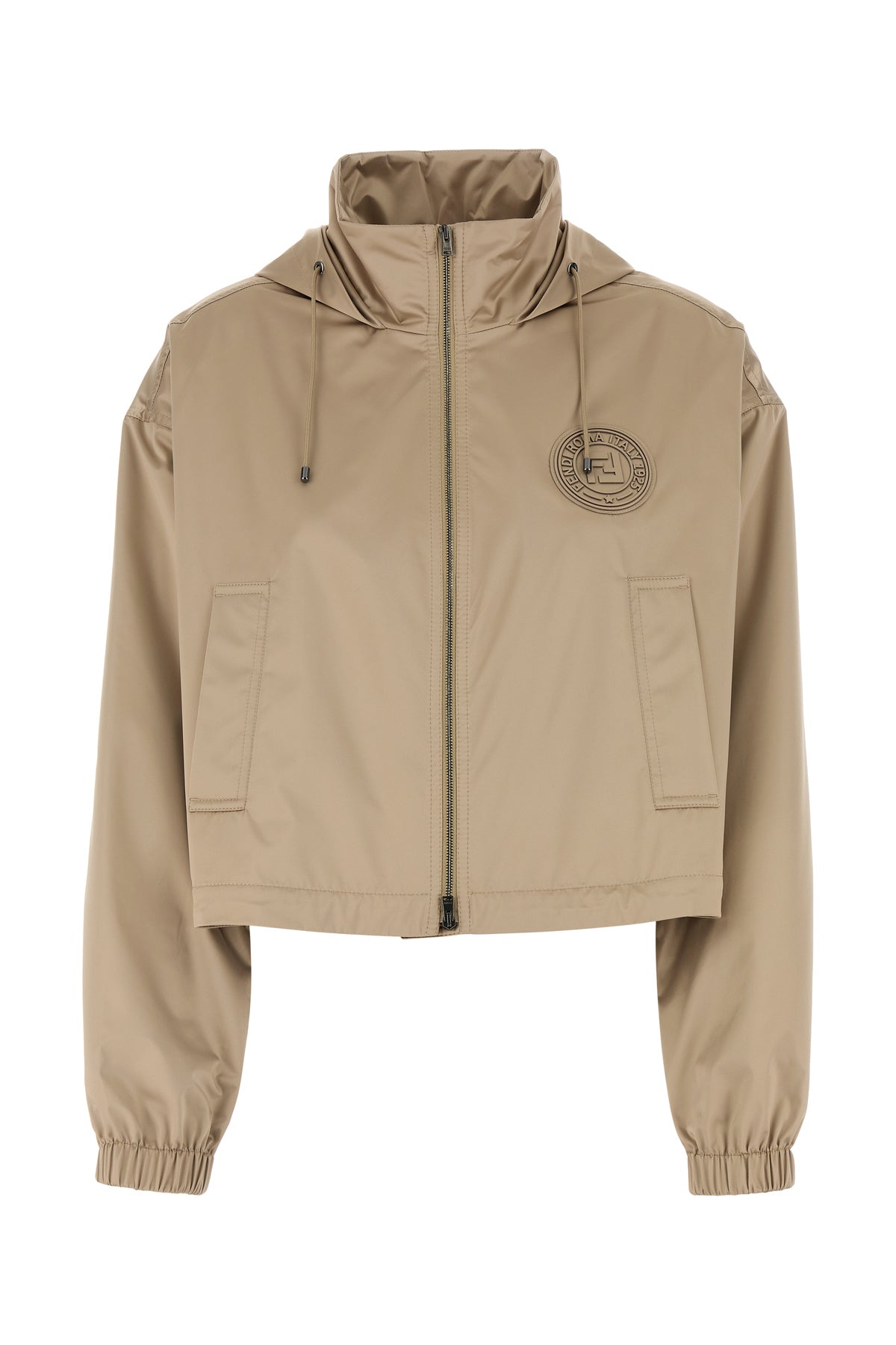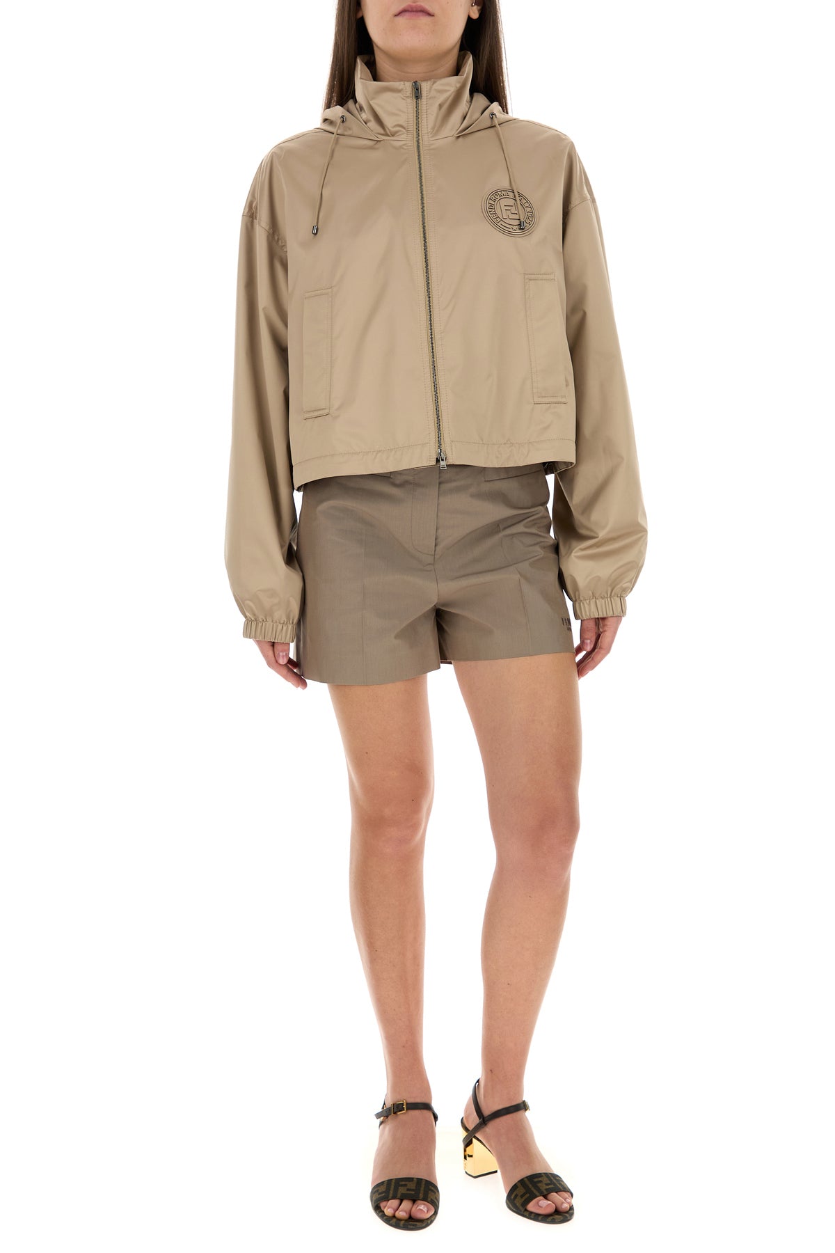 Windbreaker realized in polyester enriched by tonal logoed patch on the chest.