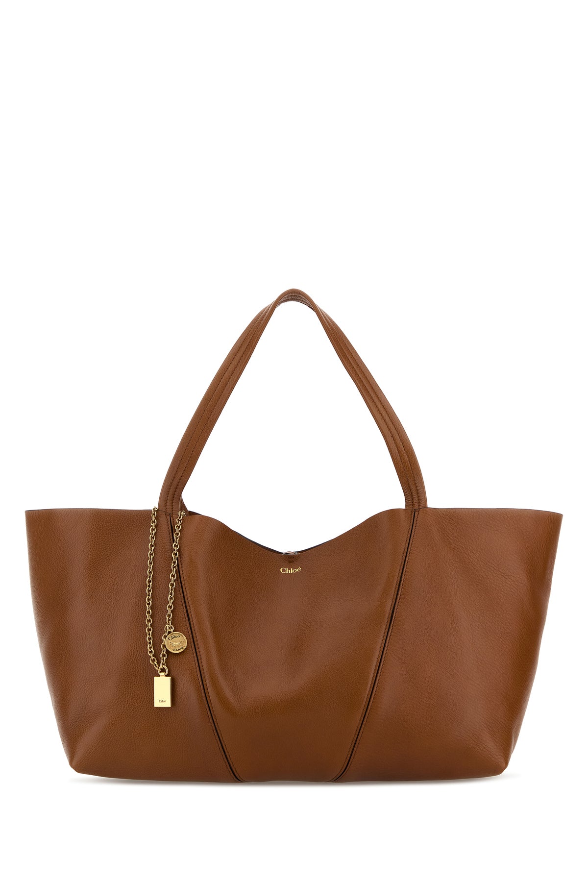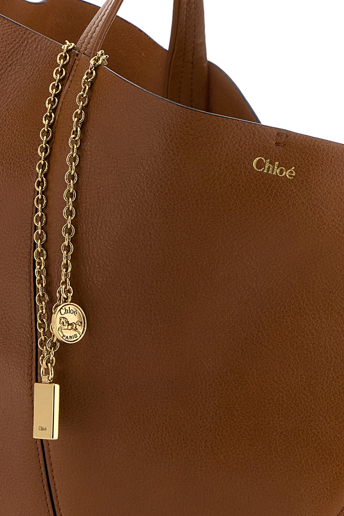 Caramel leather East-West Chloé Spin shopping bag