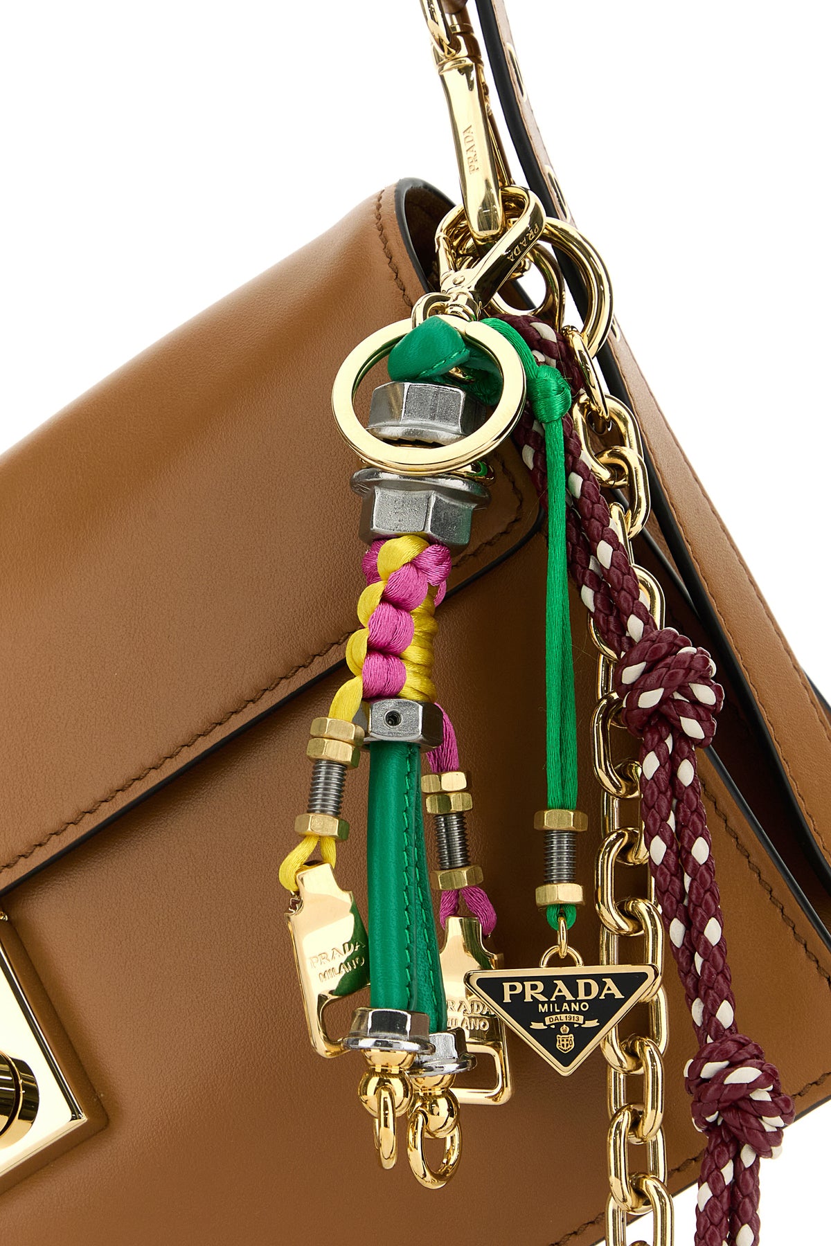 Caramel leather small Prada Soft Sound shoulder bag