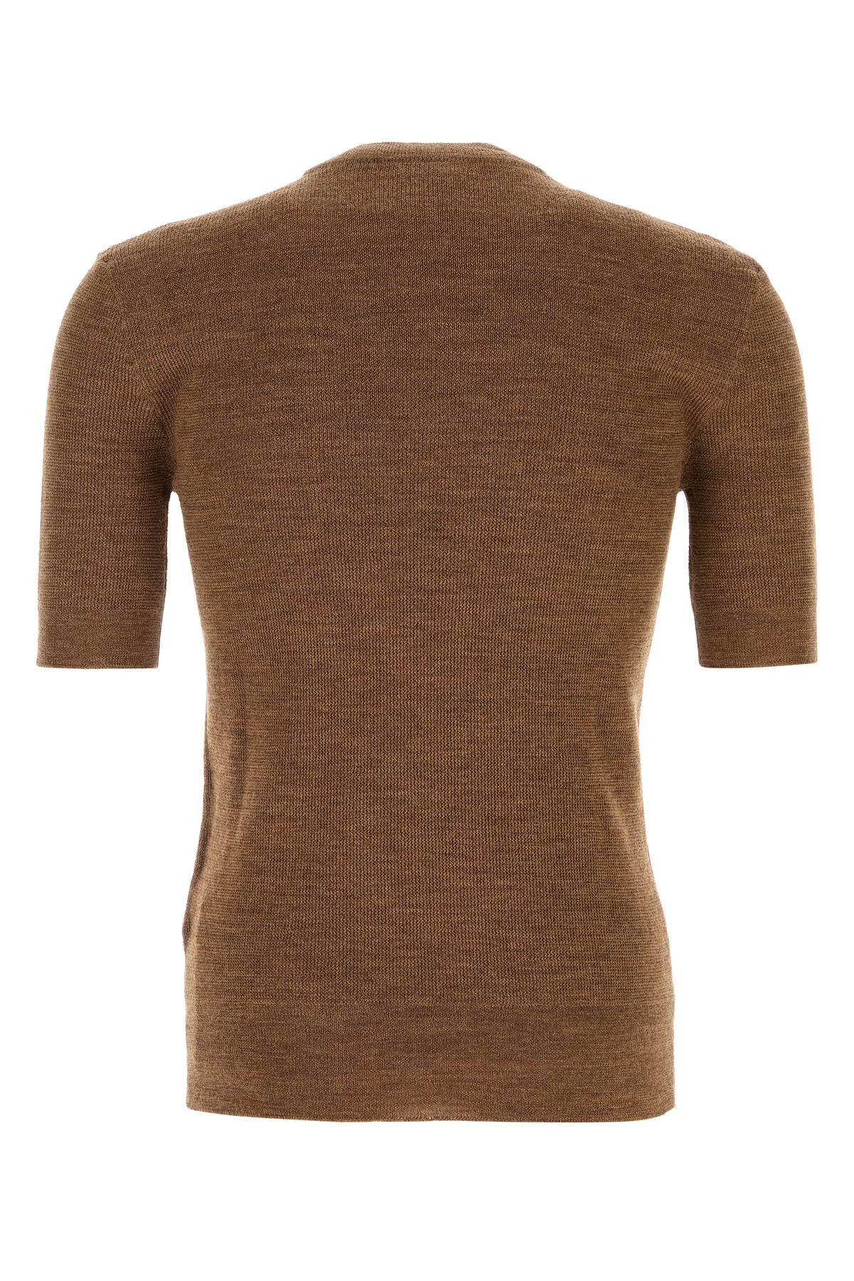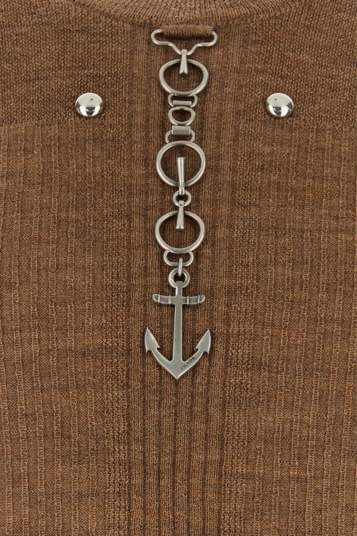 Short-sleeves sweater realized in pure virgin wool enriched by metal studs and metal detail at the front.