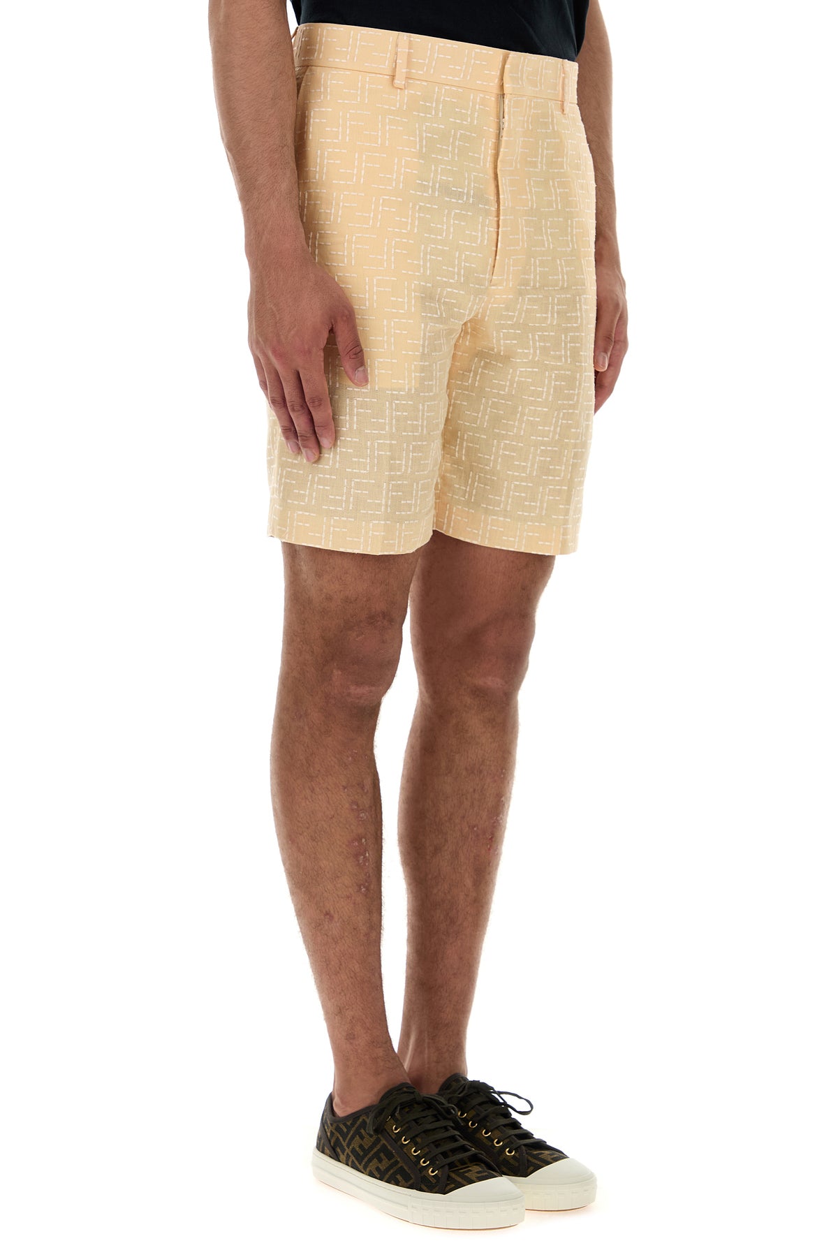 Bermuda shorts realized in linen and cotton characterized by FF motif embroidery on the entire surface.