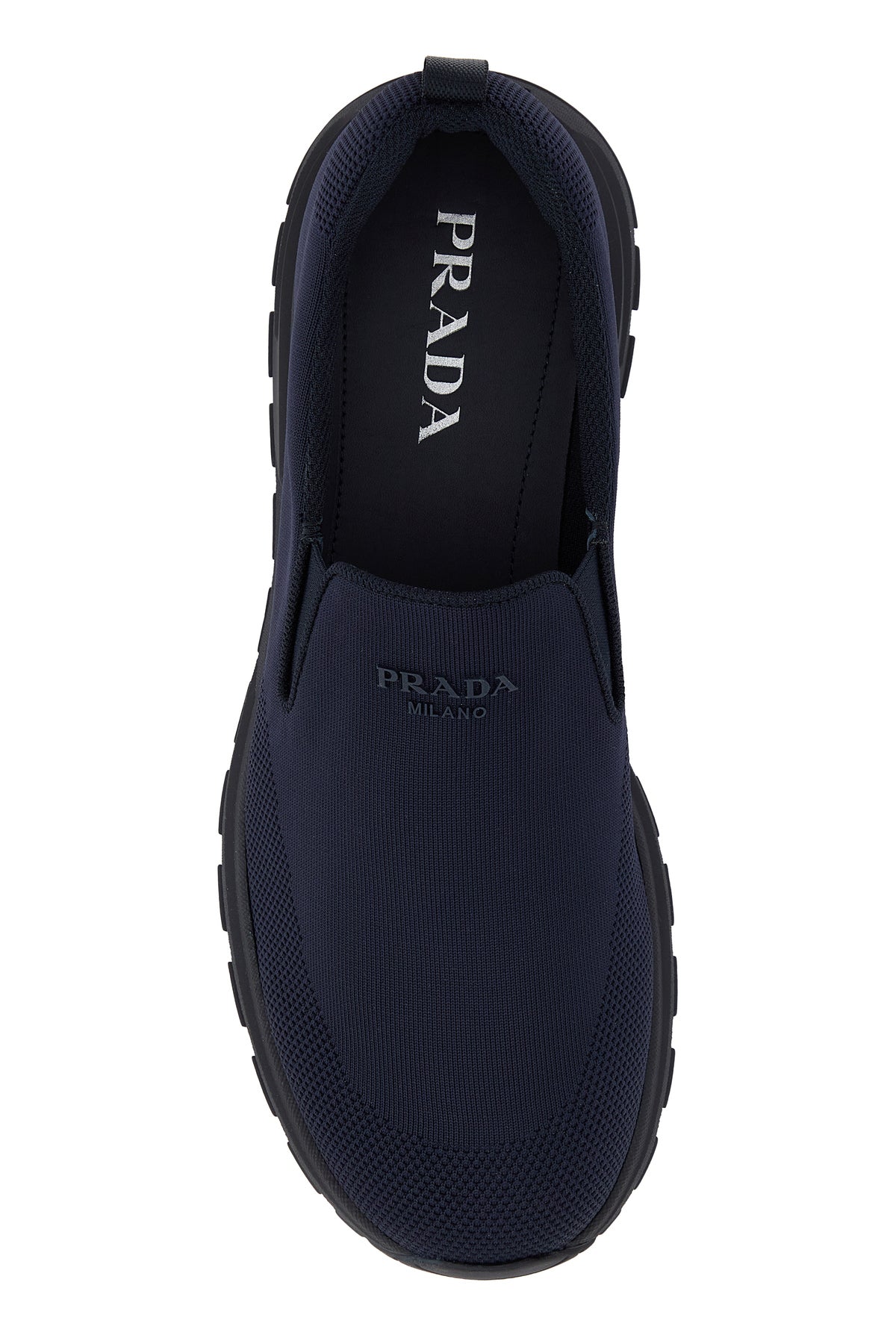 Slip ons realized in jersey enriched by rubberized logoed patch on the instep.