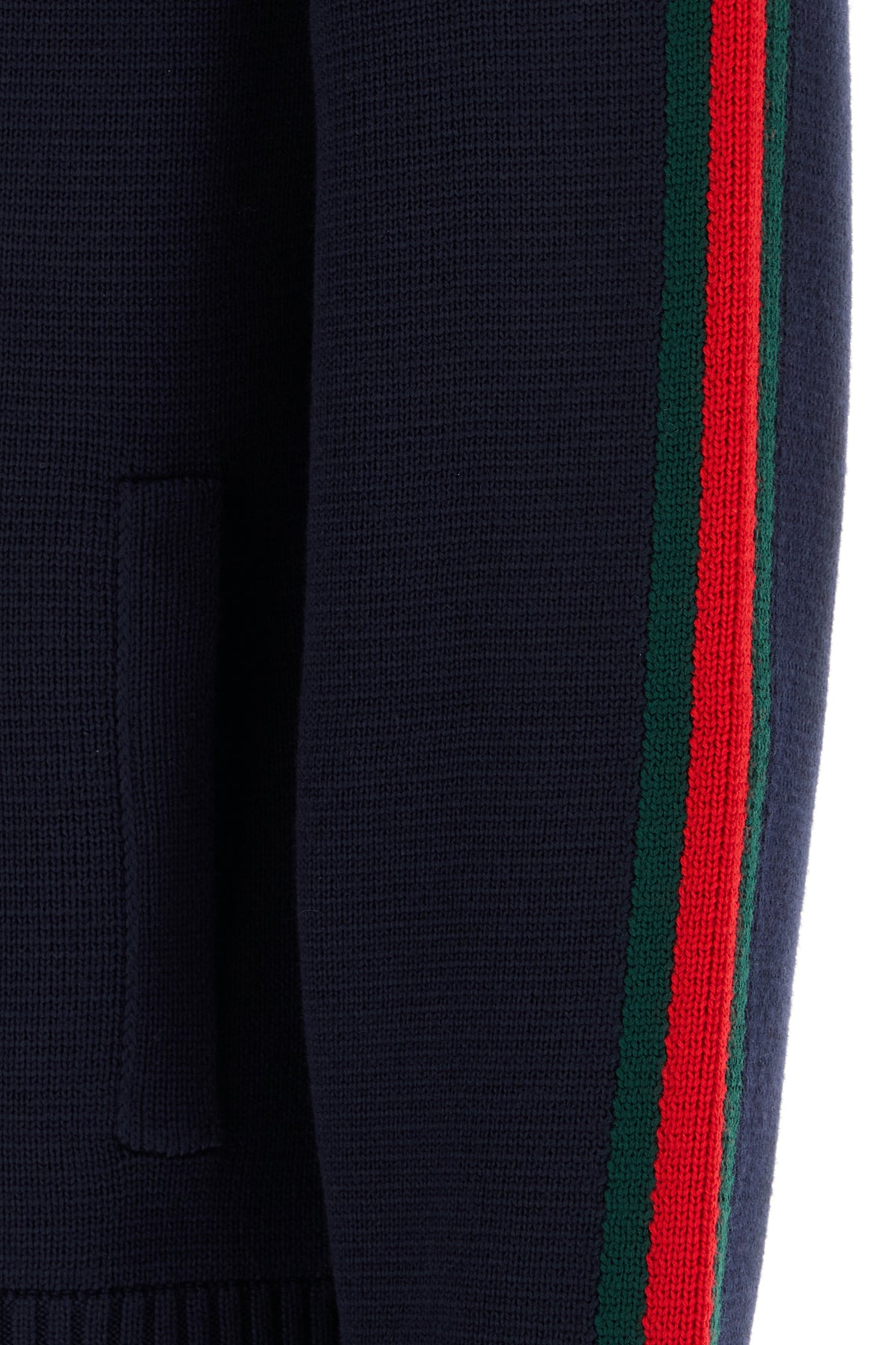 Cardigan realized in pure wool characterized by Web embroidery on the sleeves.