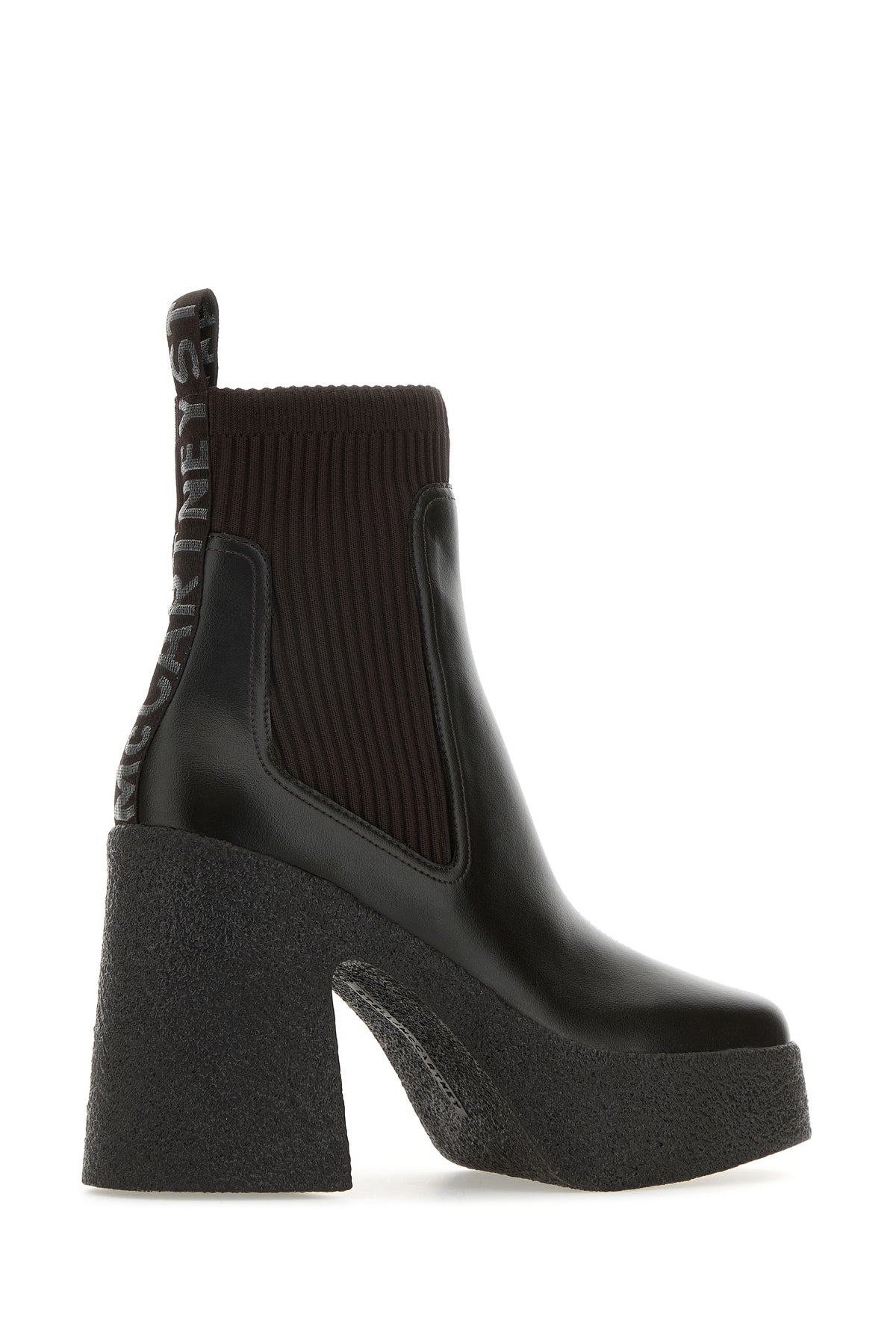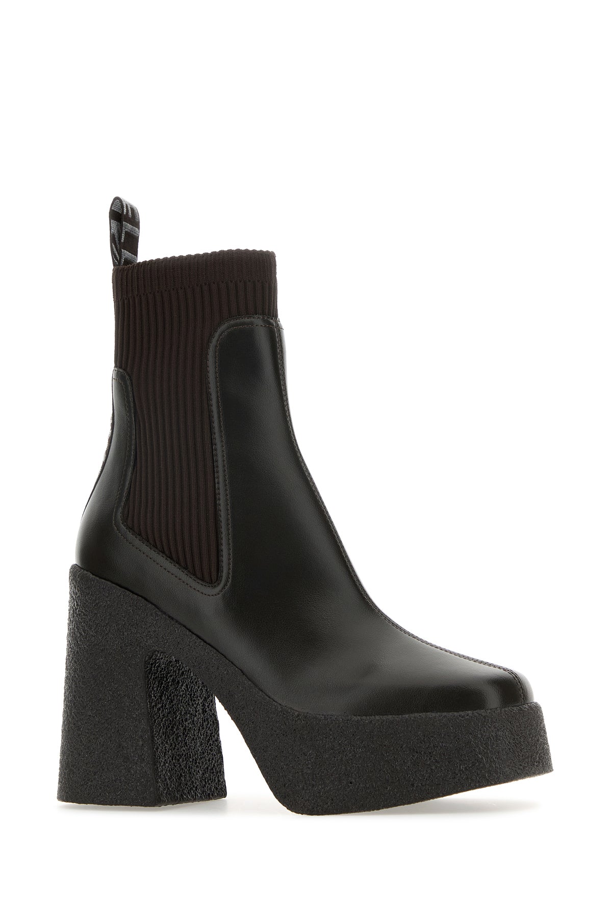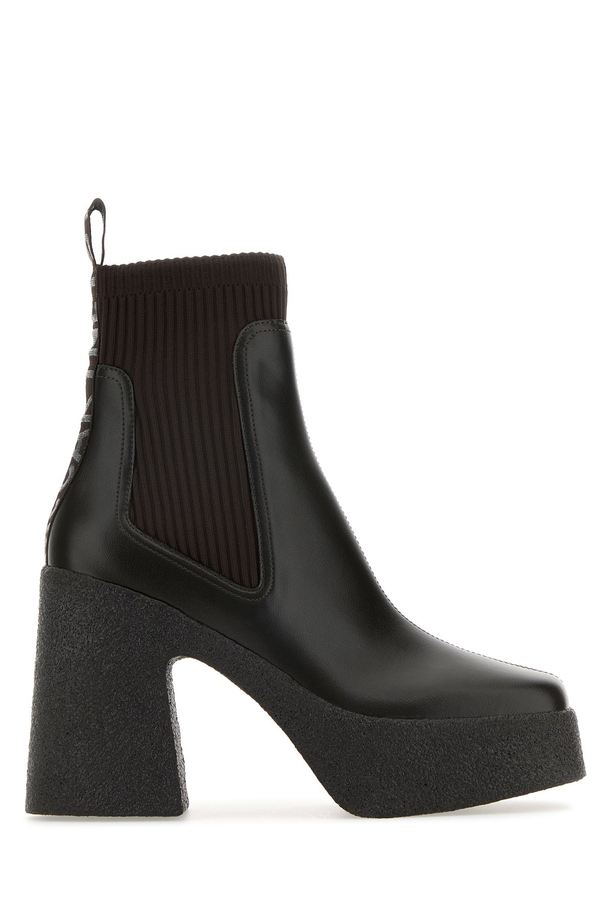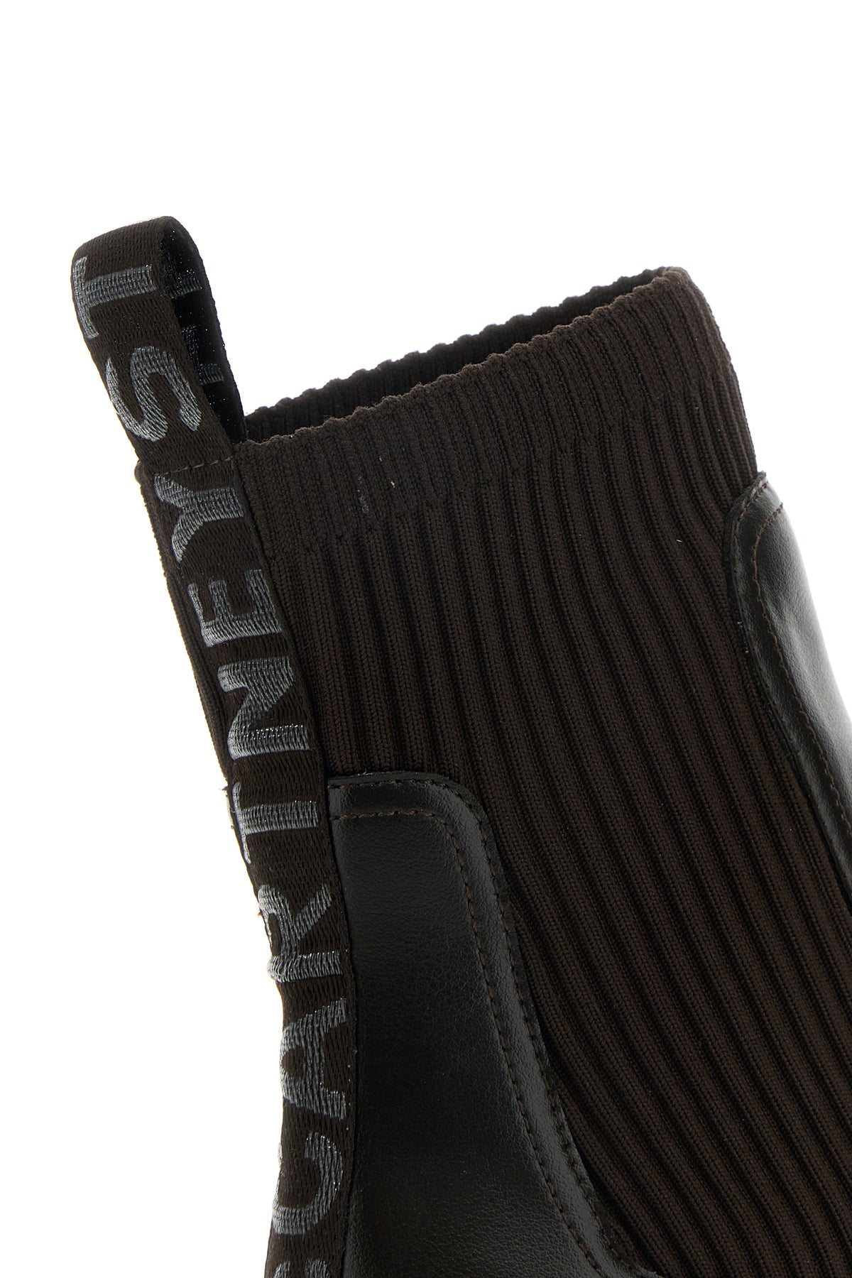 Ankle boots realized in alter mat characterized by contrasting embroidered logo at the back.