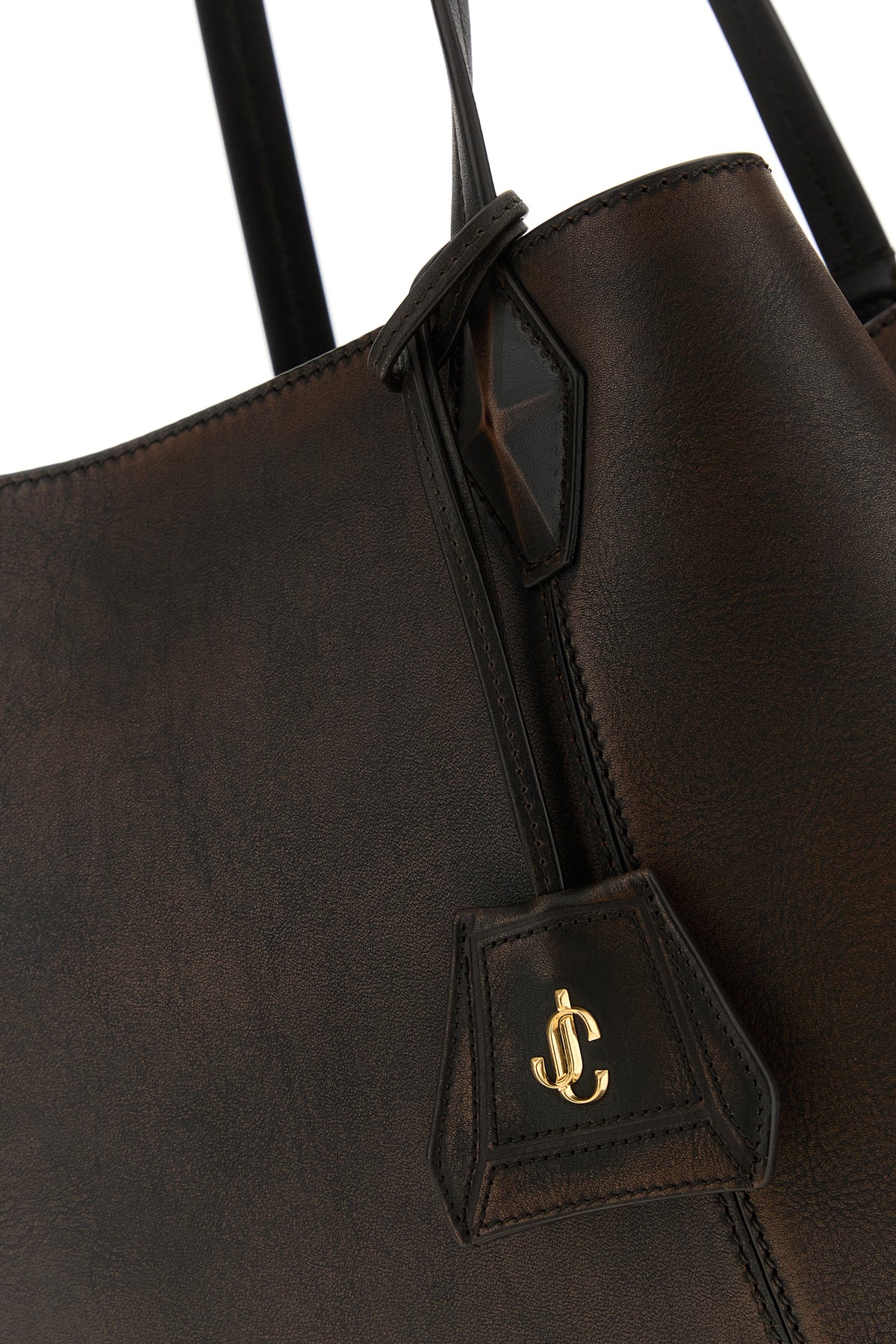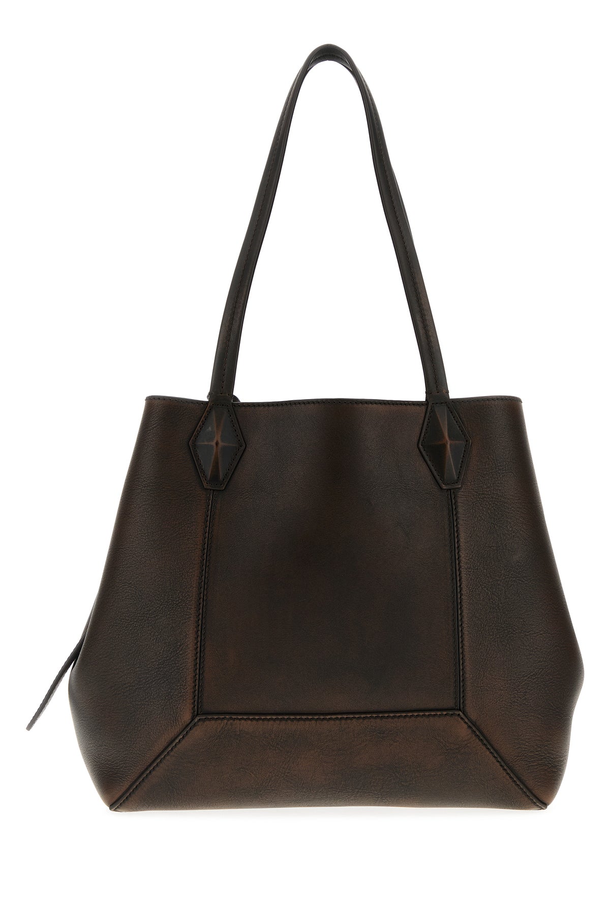 Dark brown leather Diamond shopping bag