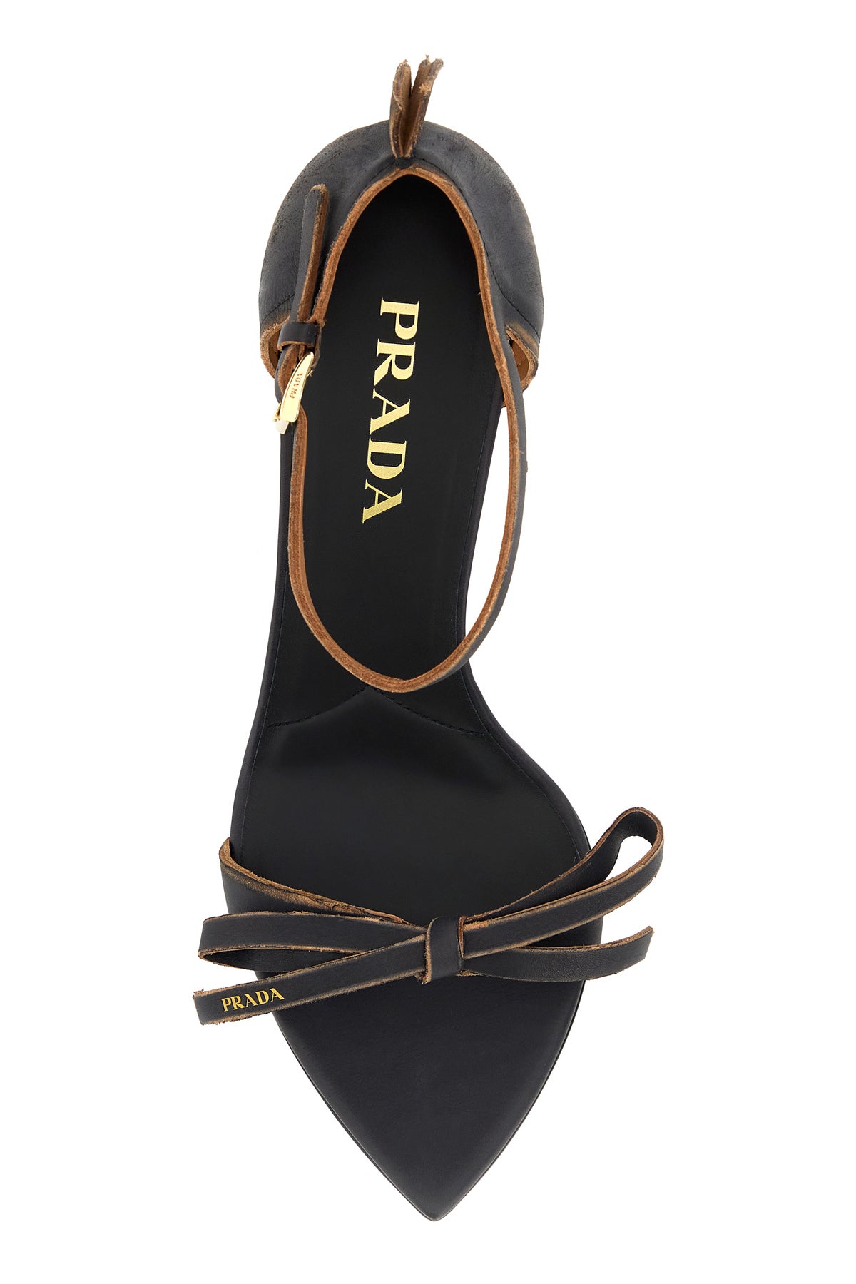 Sandals realized in vintage effect leather enriched by decorative logoed bow on the instep.