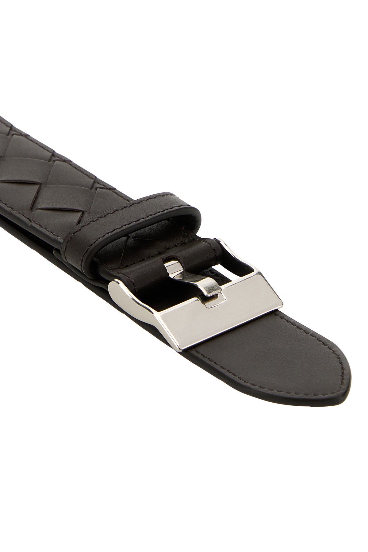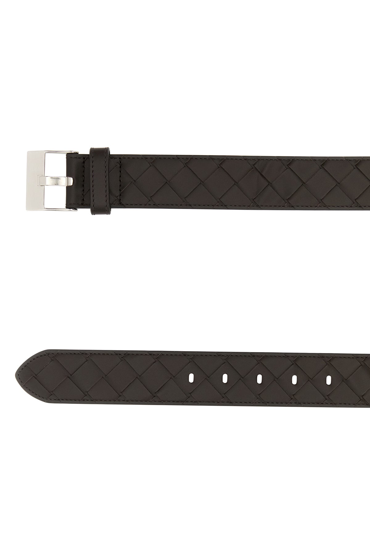 Belt realized in leather characterized by iconic Intrecciato motif on the entire surface.