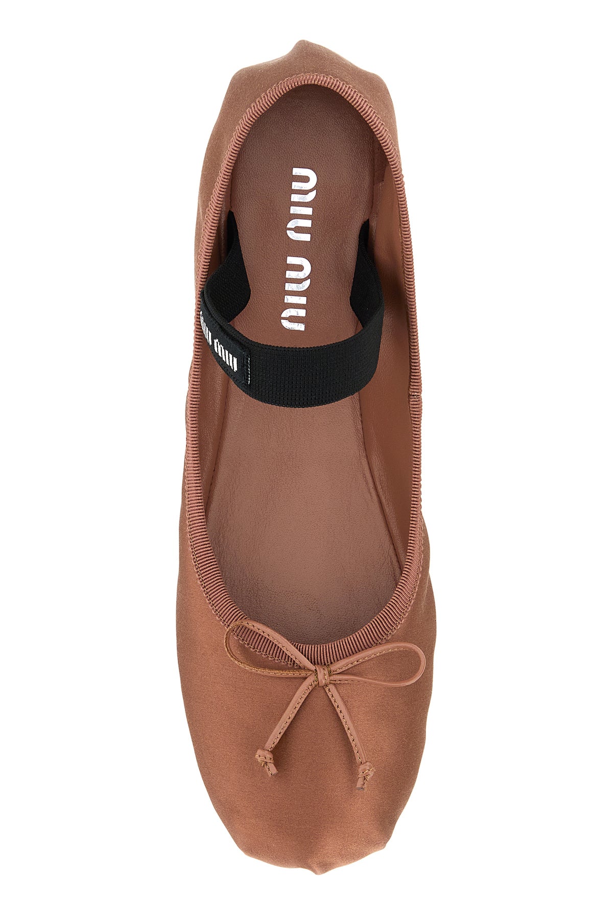 Ballerinas realized in satin enriched by leather bow at the front and elastic strap with contrasting embroidered logo on the instep.