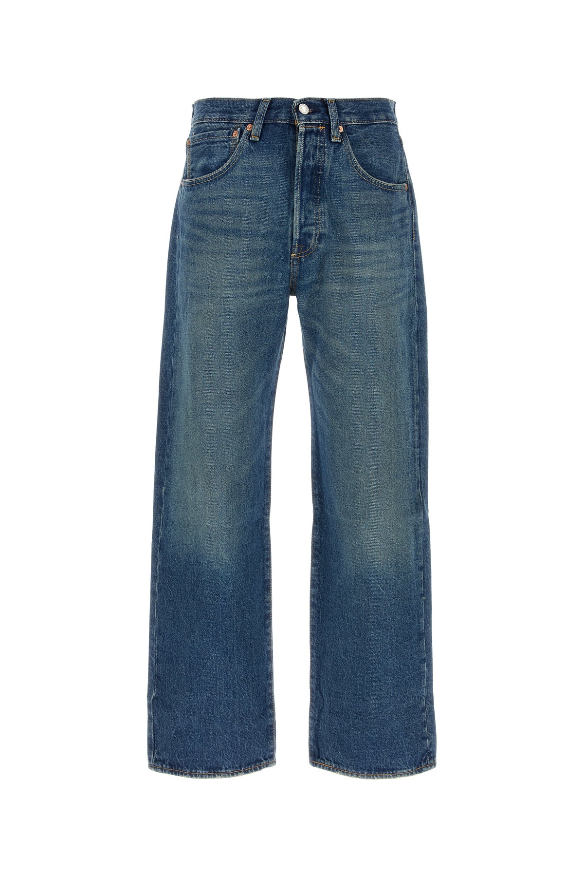 Jeans realized in stonewashed pure cotton denim enriched by logoed label at the back.