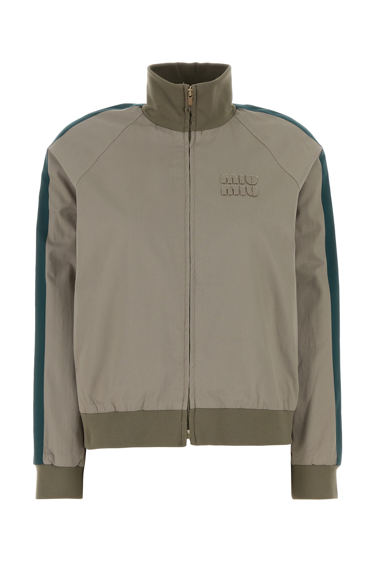 Jacket realized in pure cotton enriched by tonal logoed patch on the chest and contrasting bands on the sleeves.