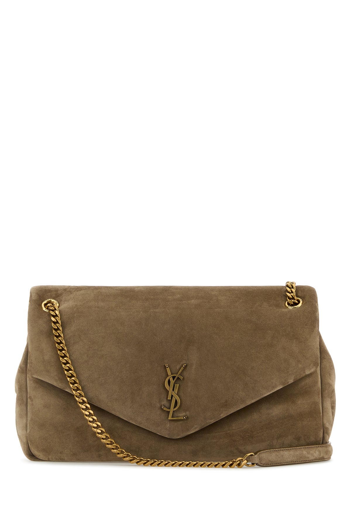 Dove grey suede leather large Calypso shoulder bag