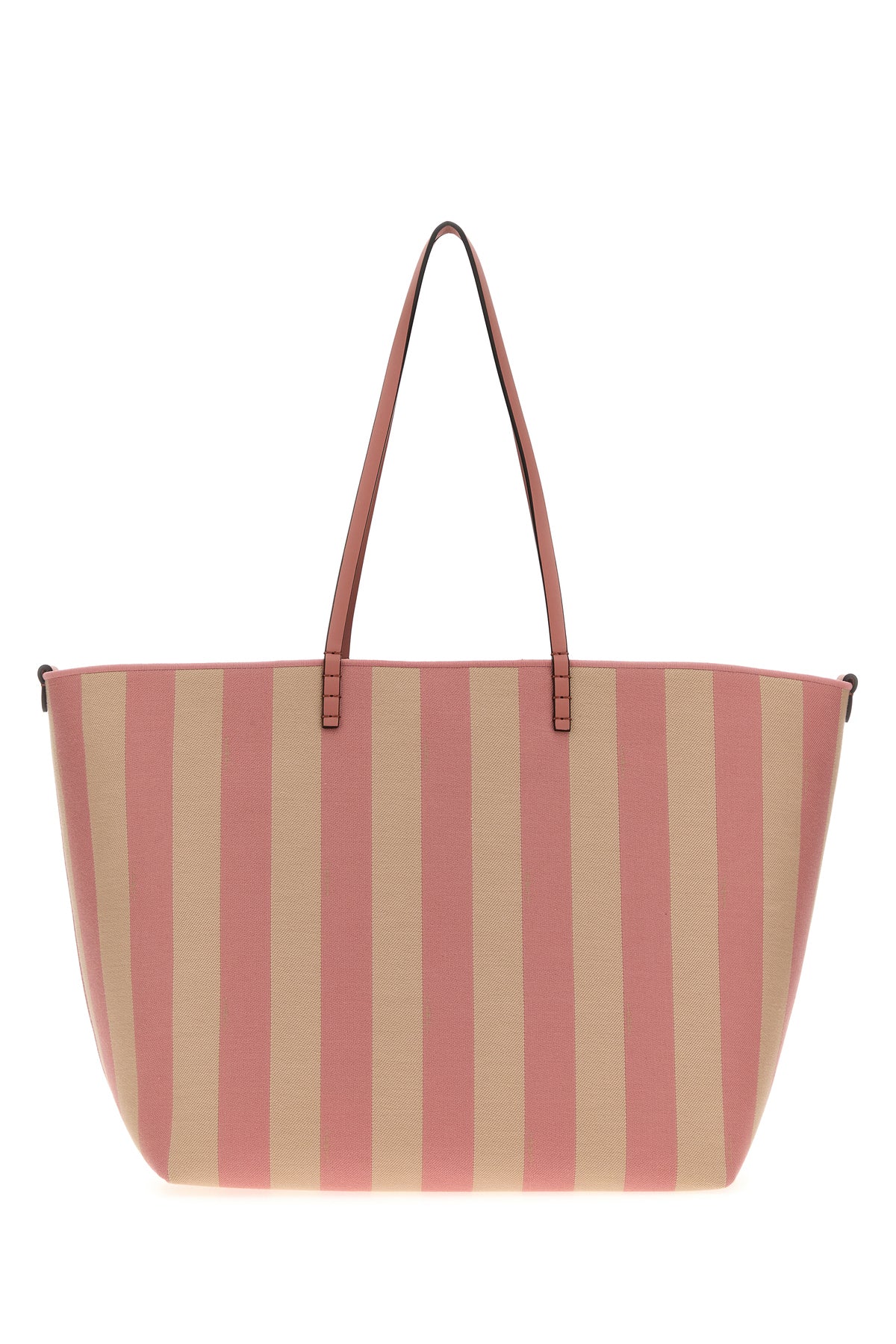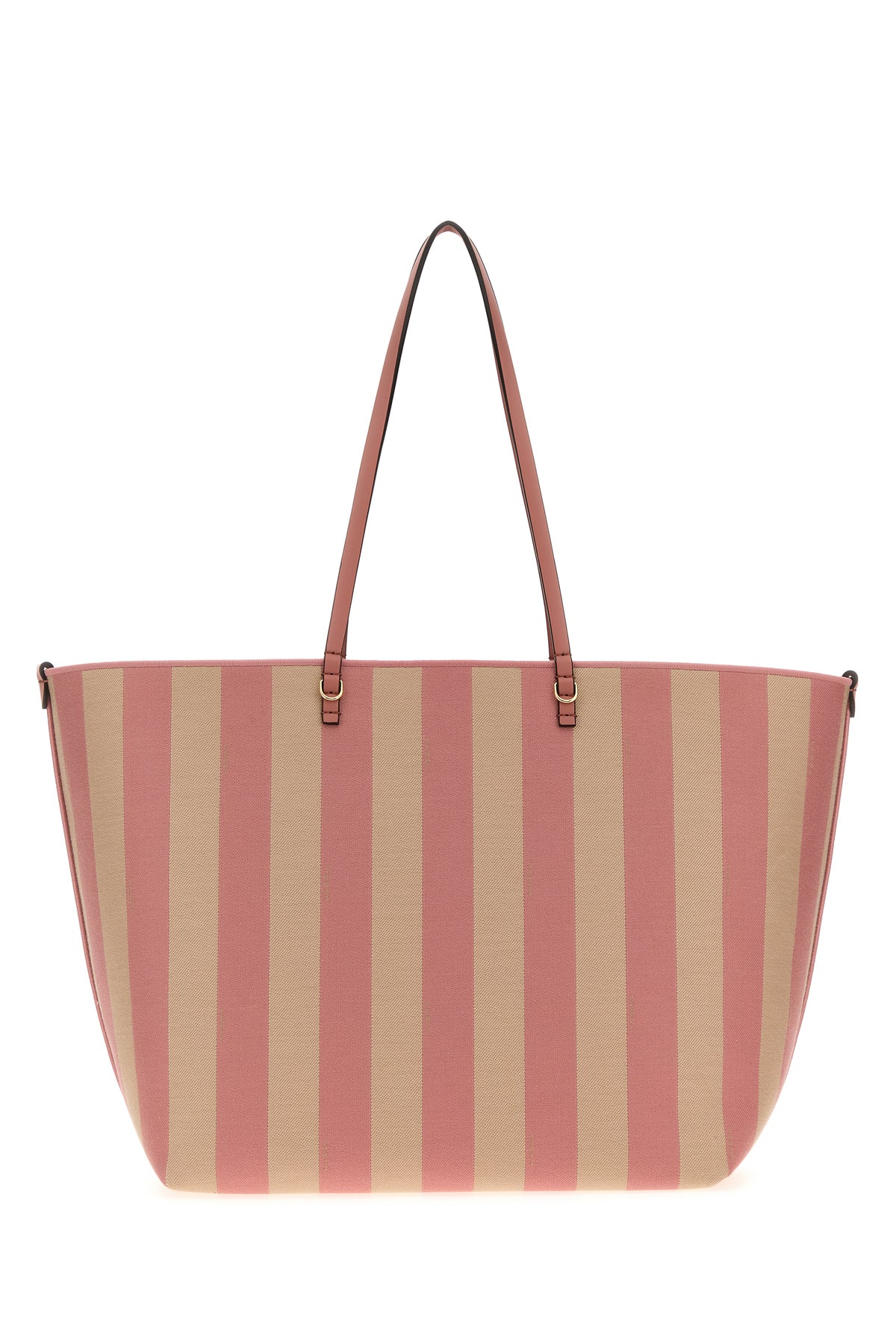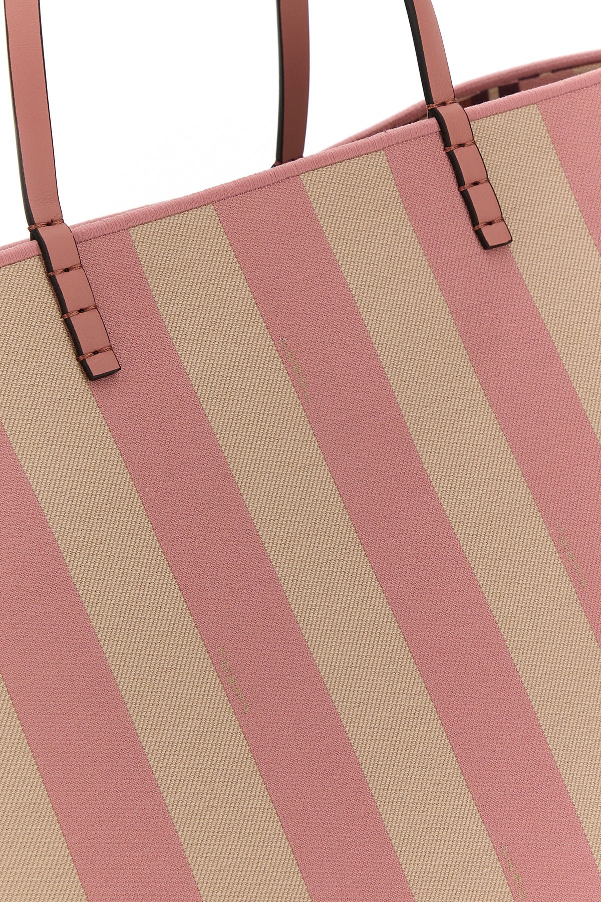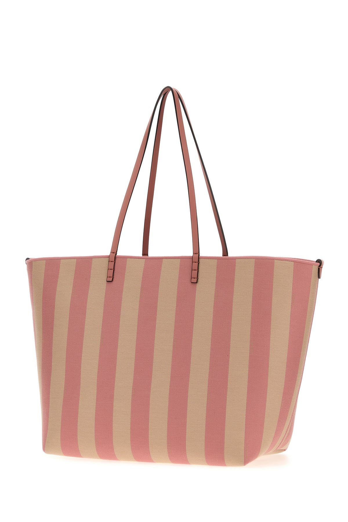 Reversible shopping bag realized in canvas characterized by striped embroidery on the entire surface.