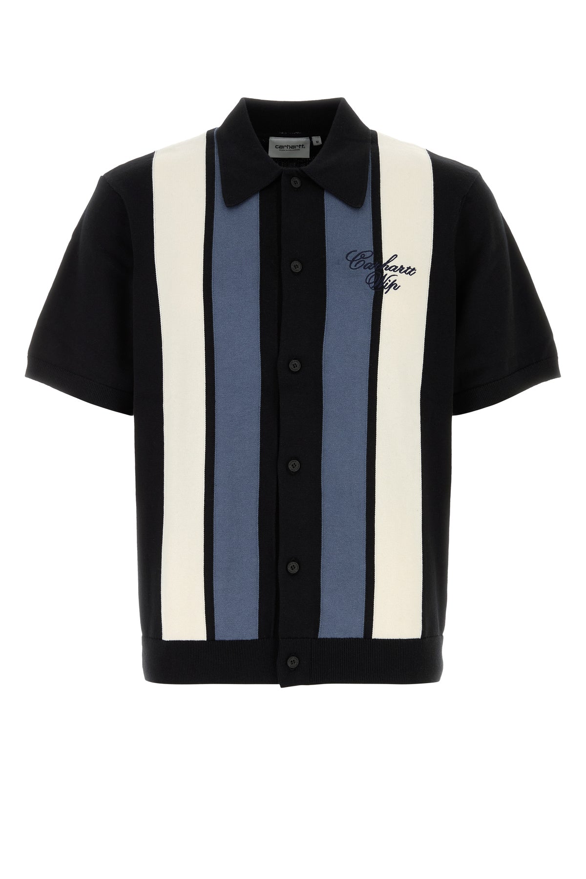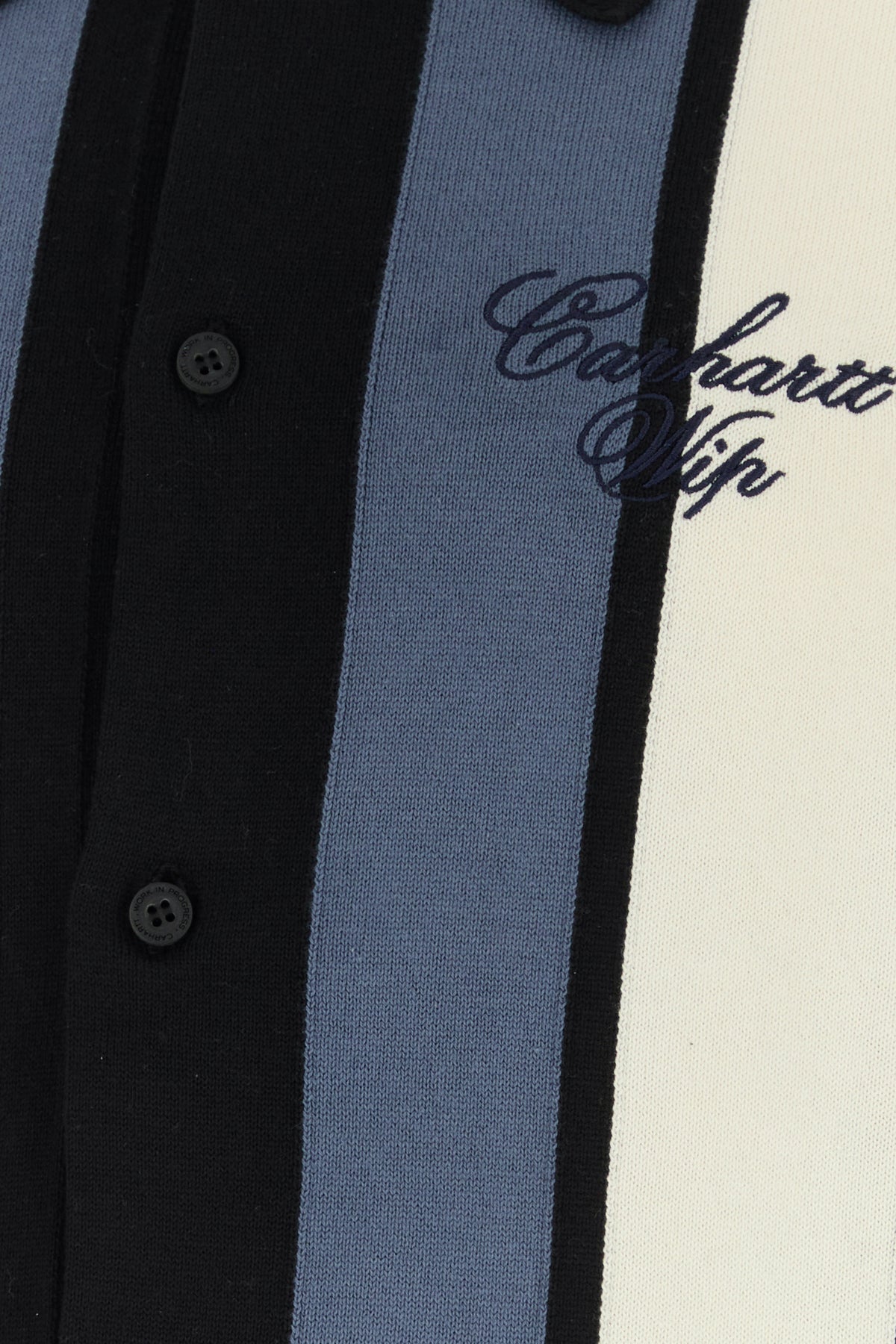 Short-sleeve shirt realized in pure cotton knit characterized by embroidered logo on the chest and striped embroidery on the entire surface.