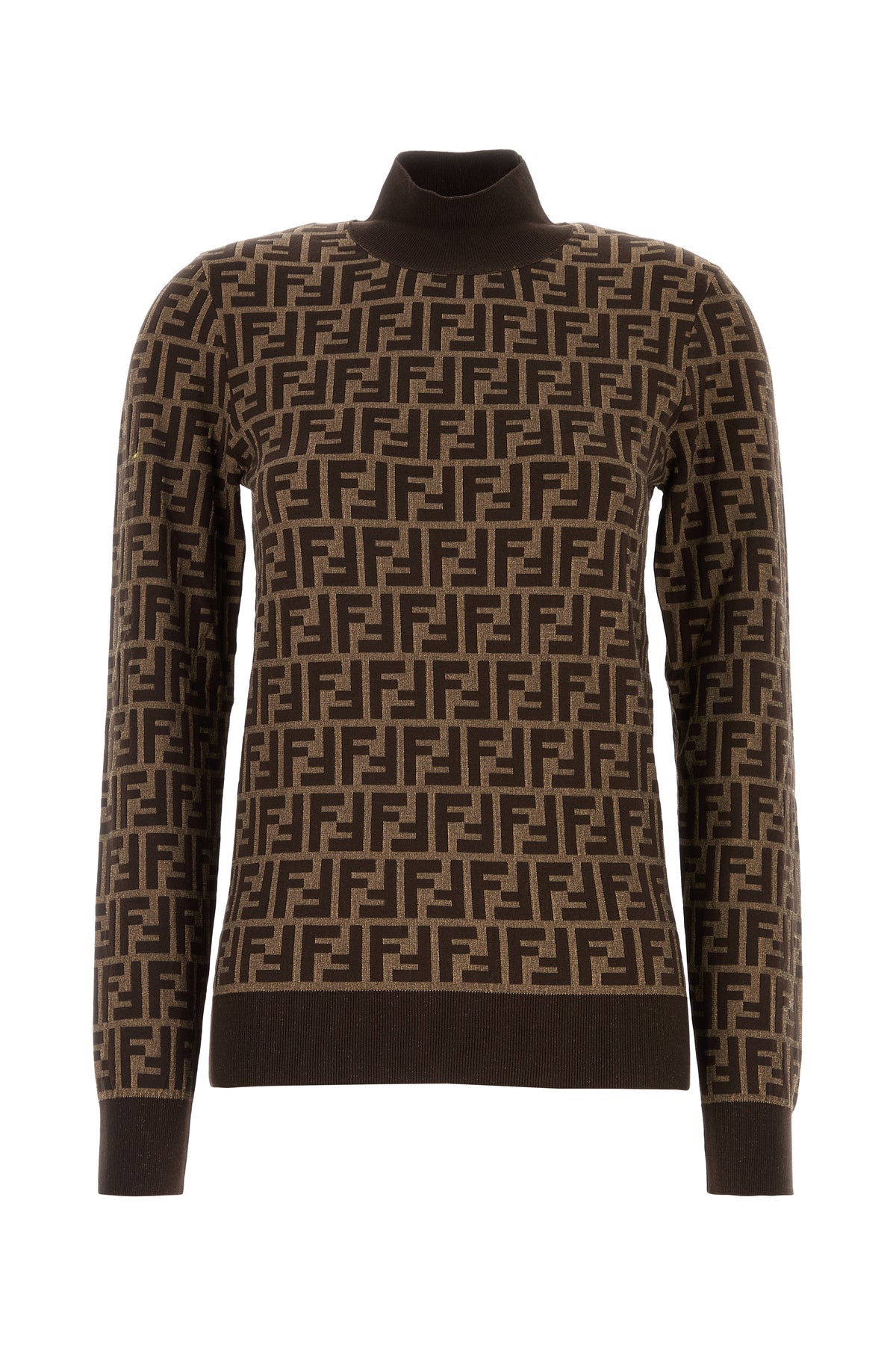 Sweater realized in pure cotton characterized by FF motif embroidery on the entire surface.