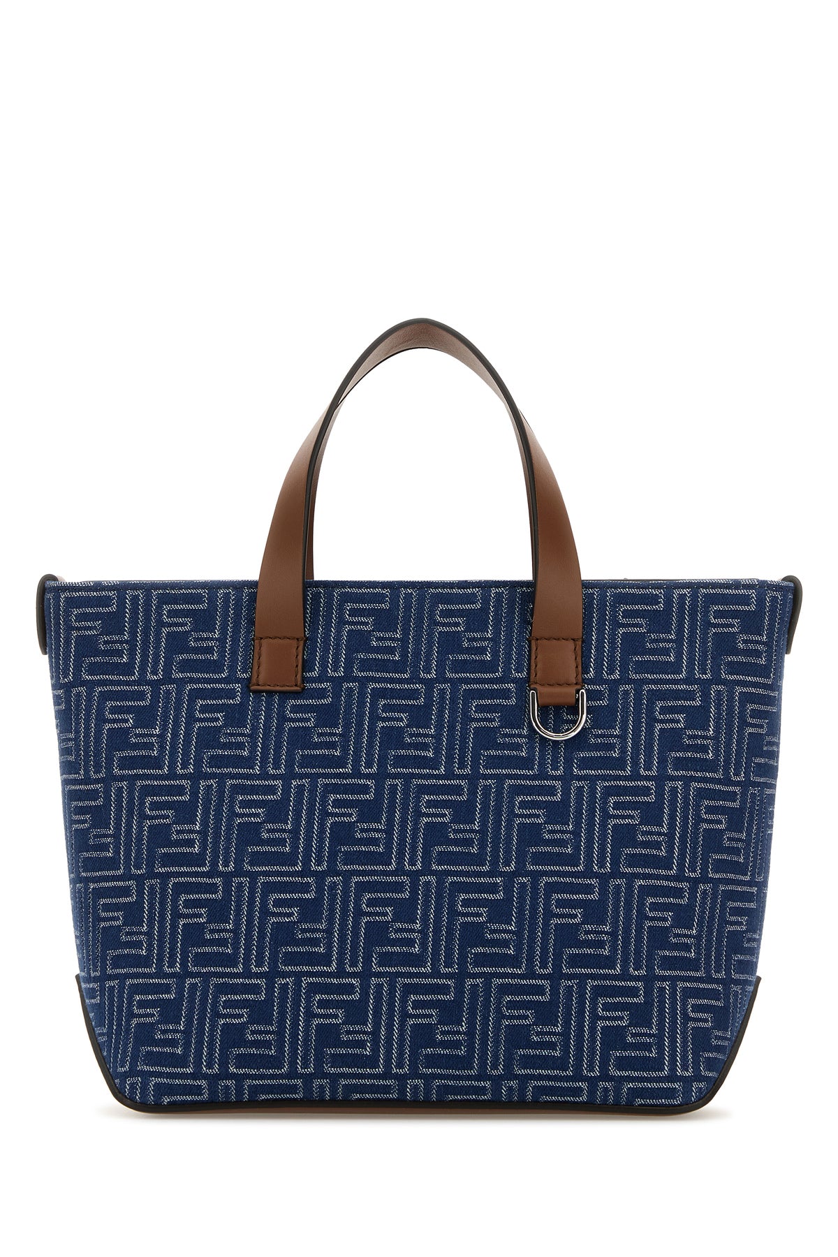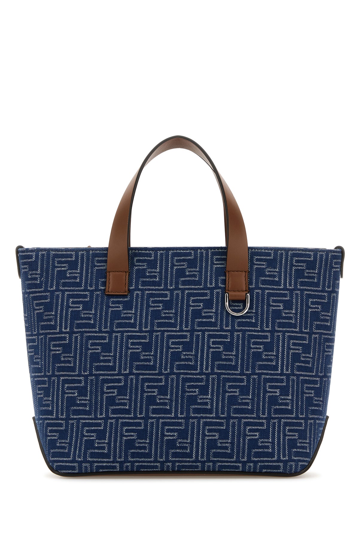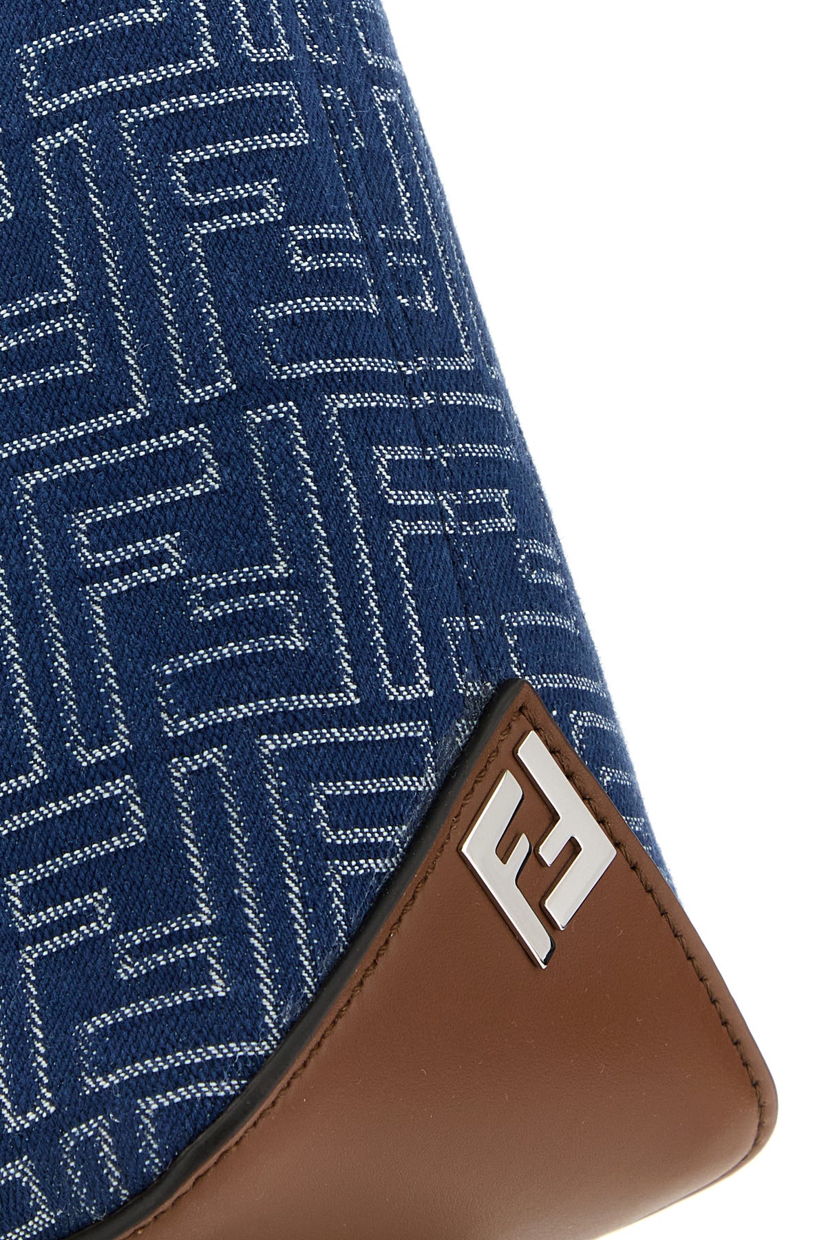 Handbag realized in denim characterized by FF embroidery on the entire surface enriched by FF metal detail on the sides.