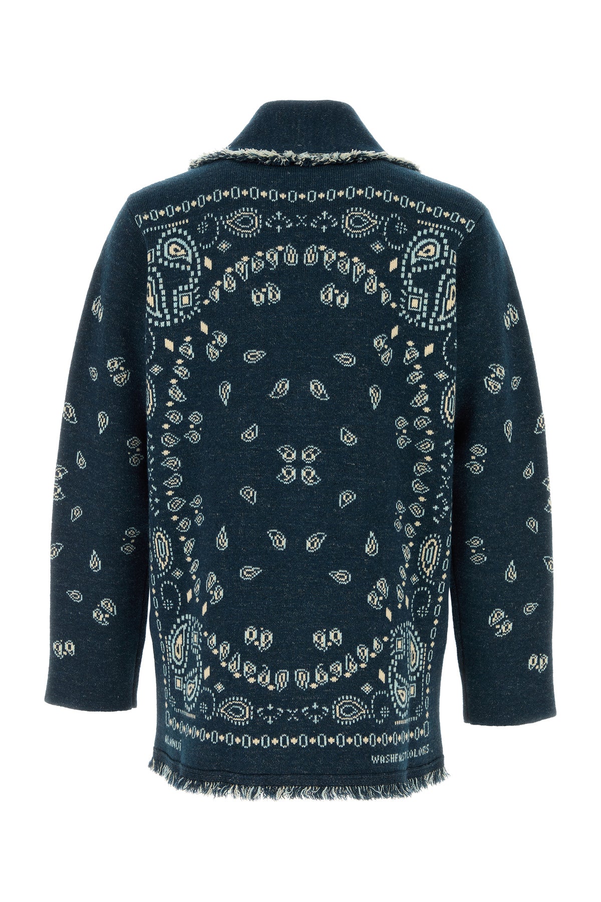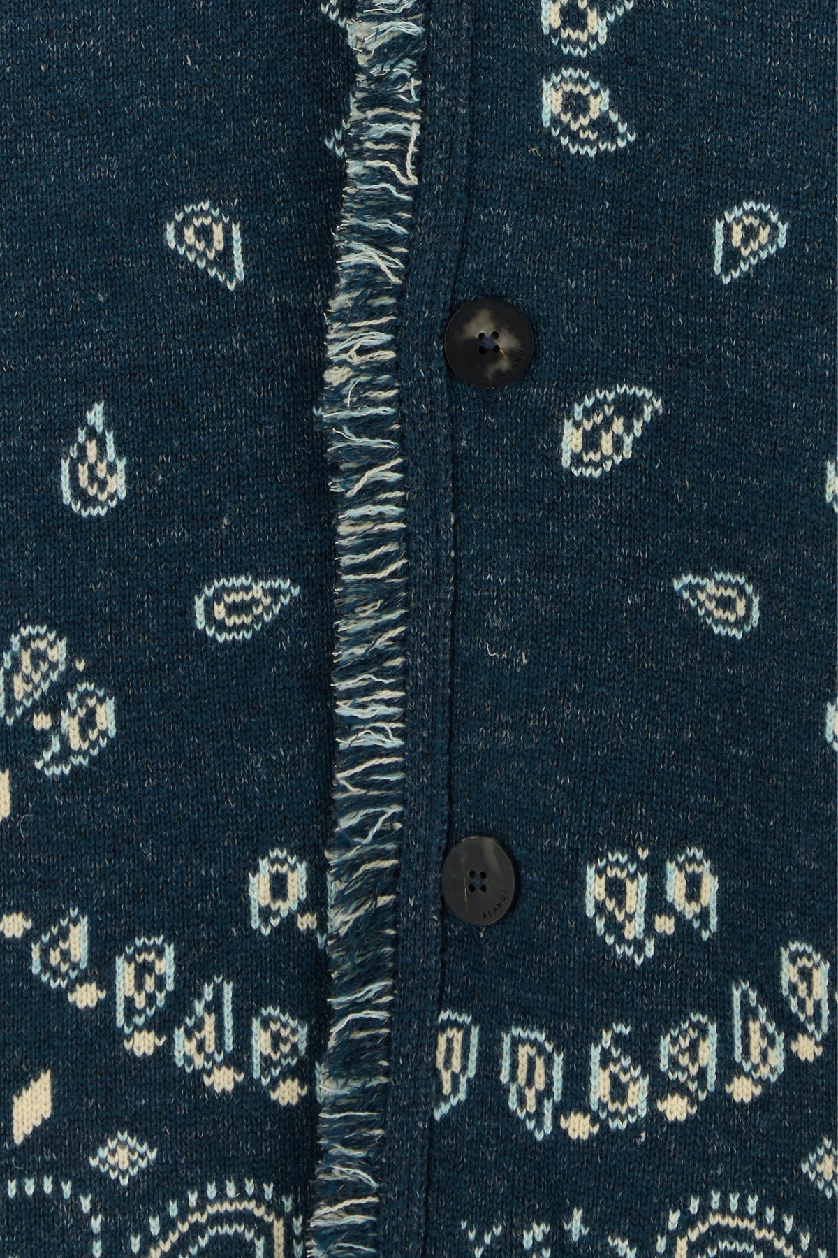 Cardigan realized in cashmere and linen jacquard characterized by Bandana embroidery on the entire surface.