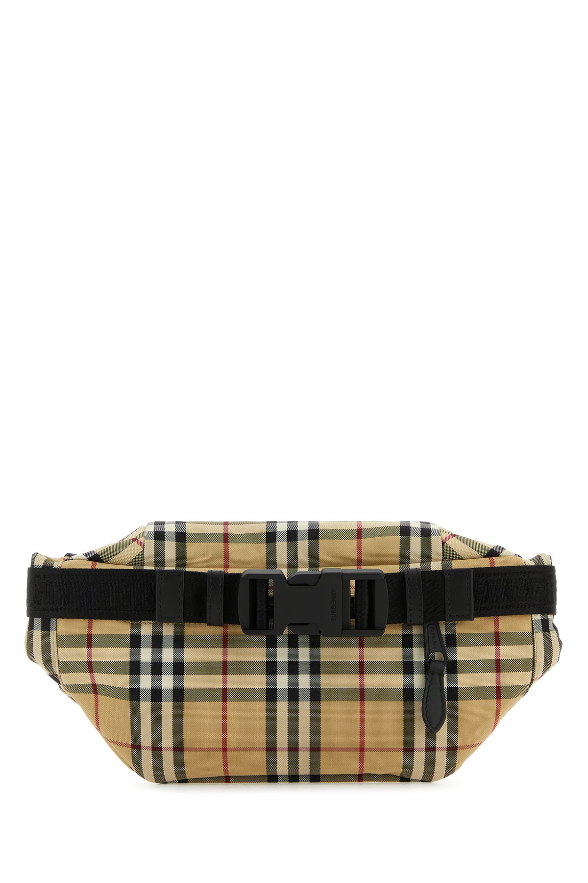 Belt bag realized in nylon characterized by Burberry Check motif embroidery on the entire surface.