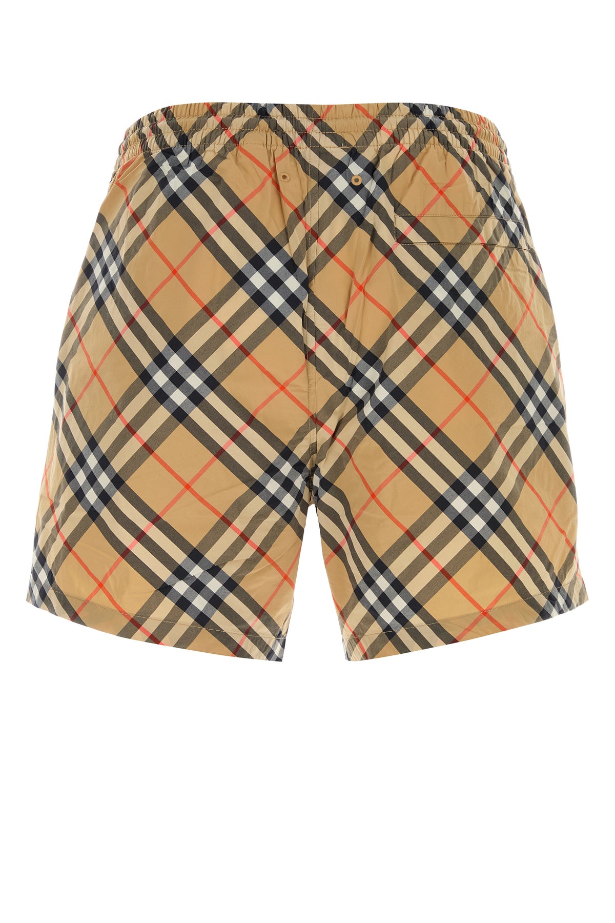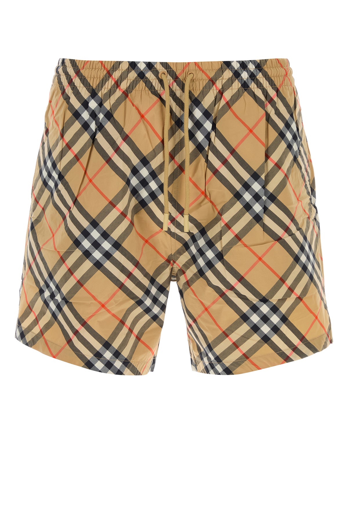 Swimming shorts realized in nylon characterized by Burberry Check embroidery on the entire surface.