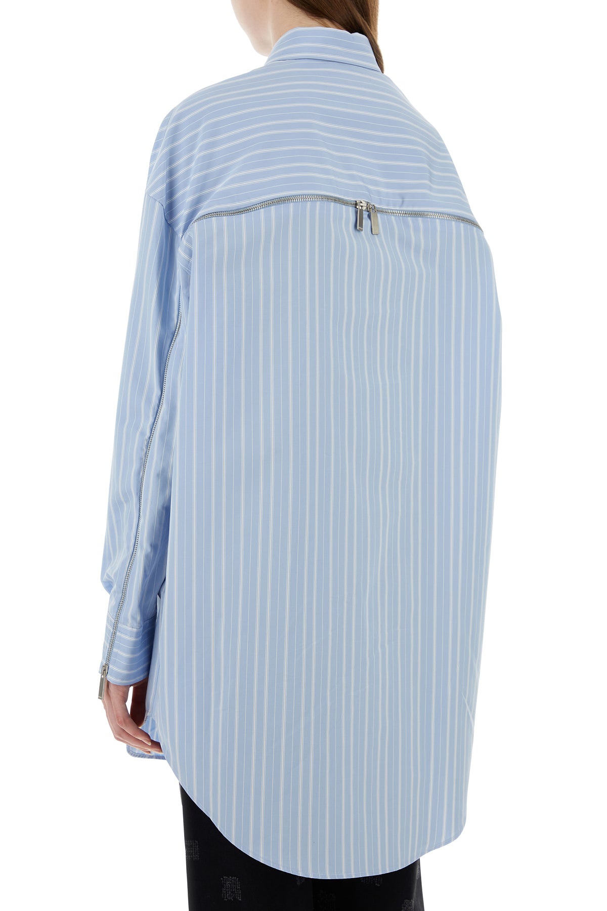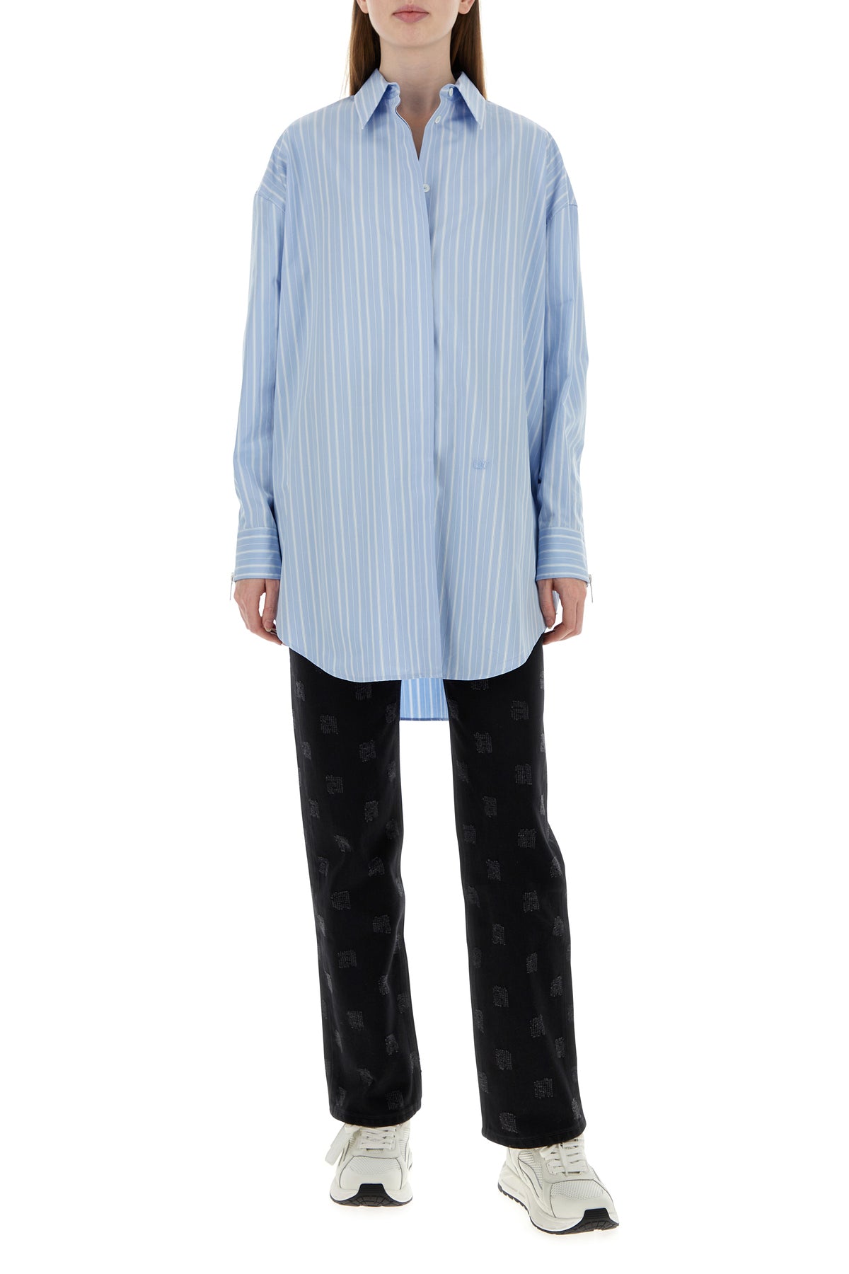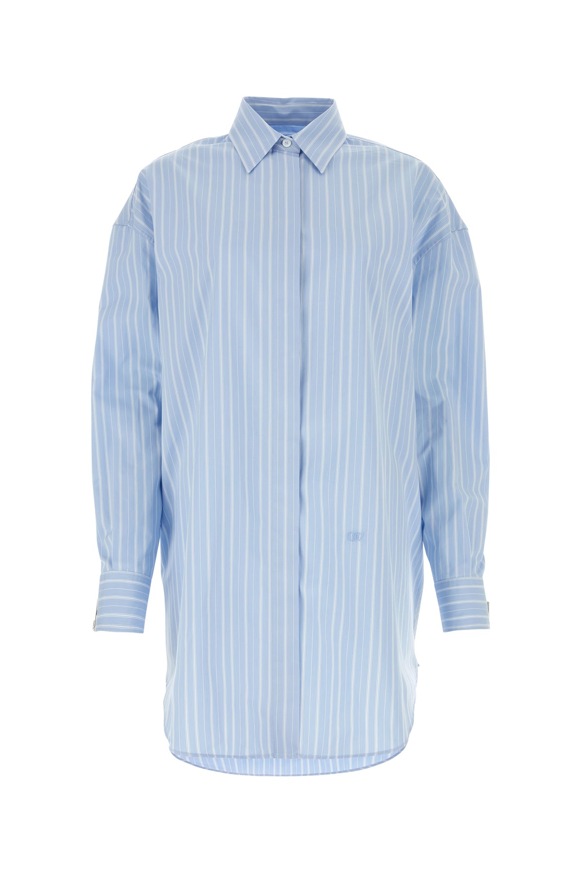 Shirt dress realized in pure cotton poplin characterized by striped embroidery on the entire surface and OW embroidery at the front.
