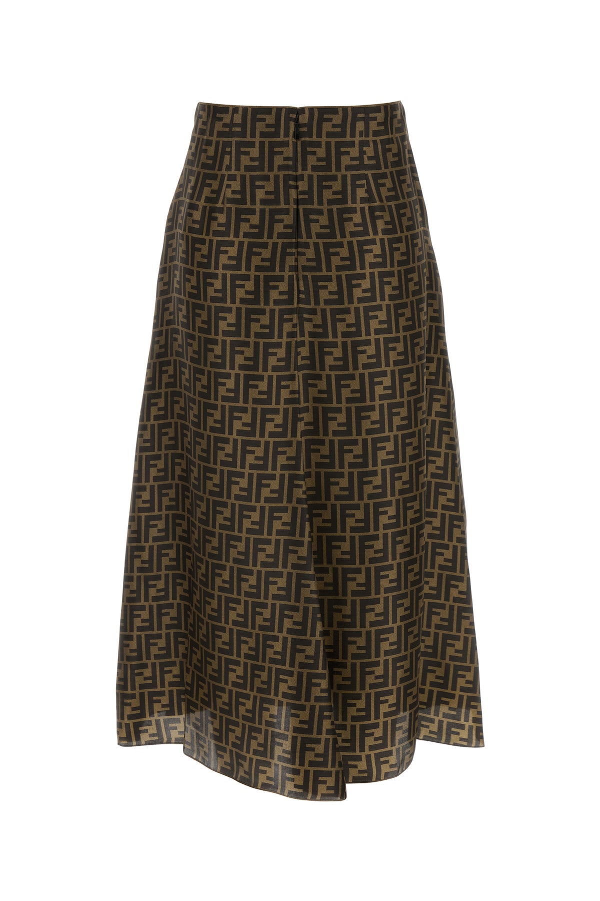 Skirt realized in pure silk characterized by FF embroidery on the entire surface.