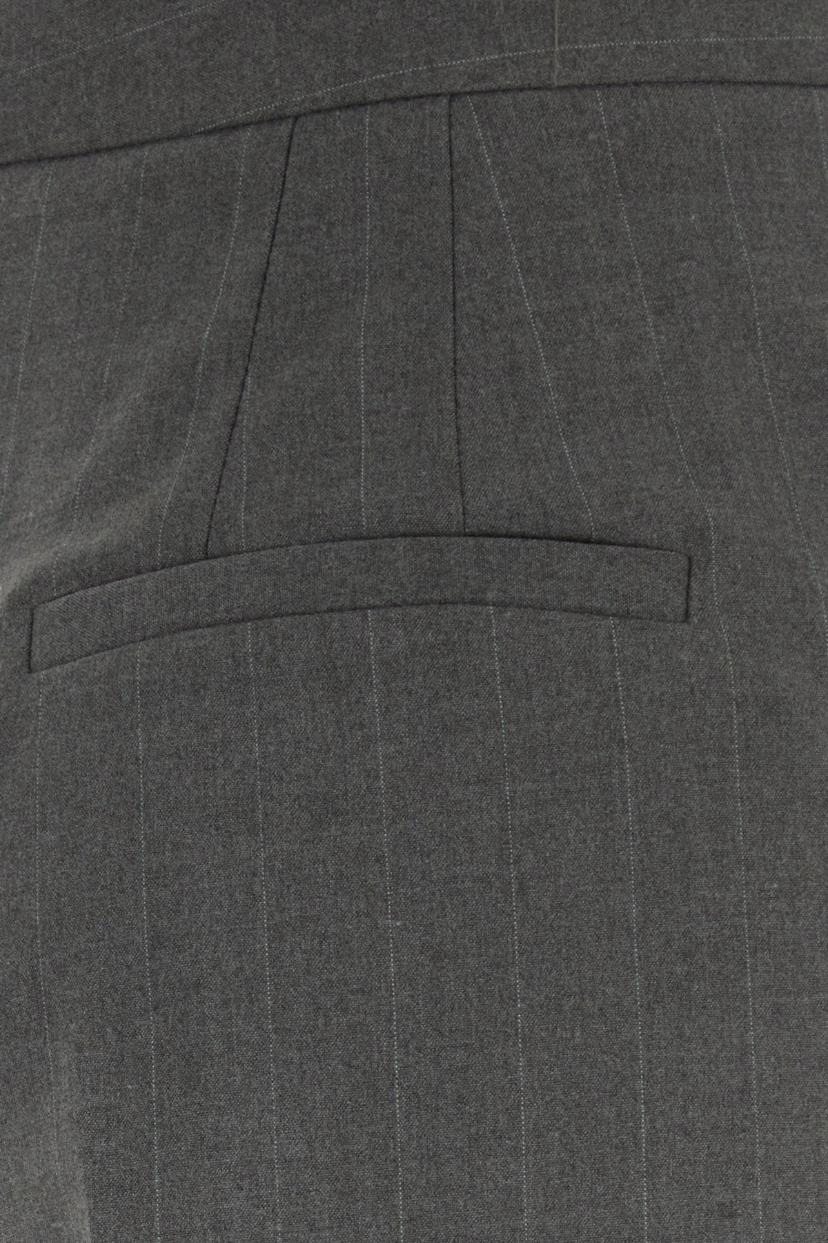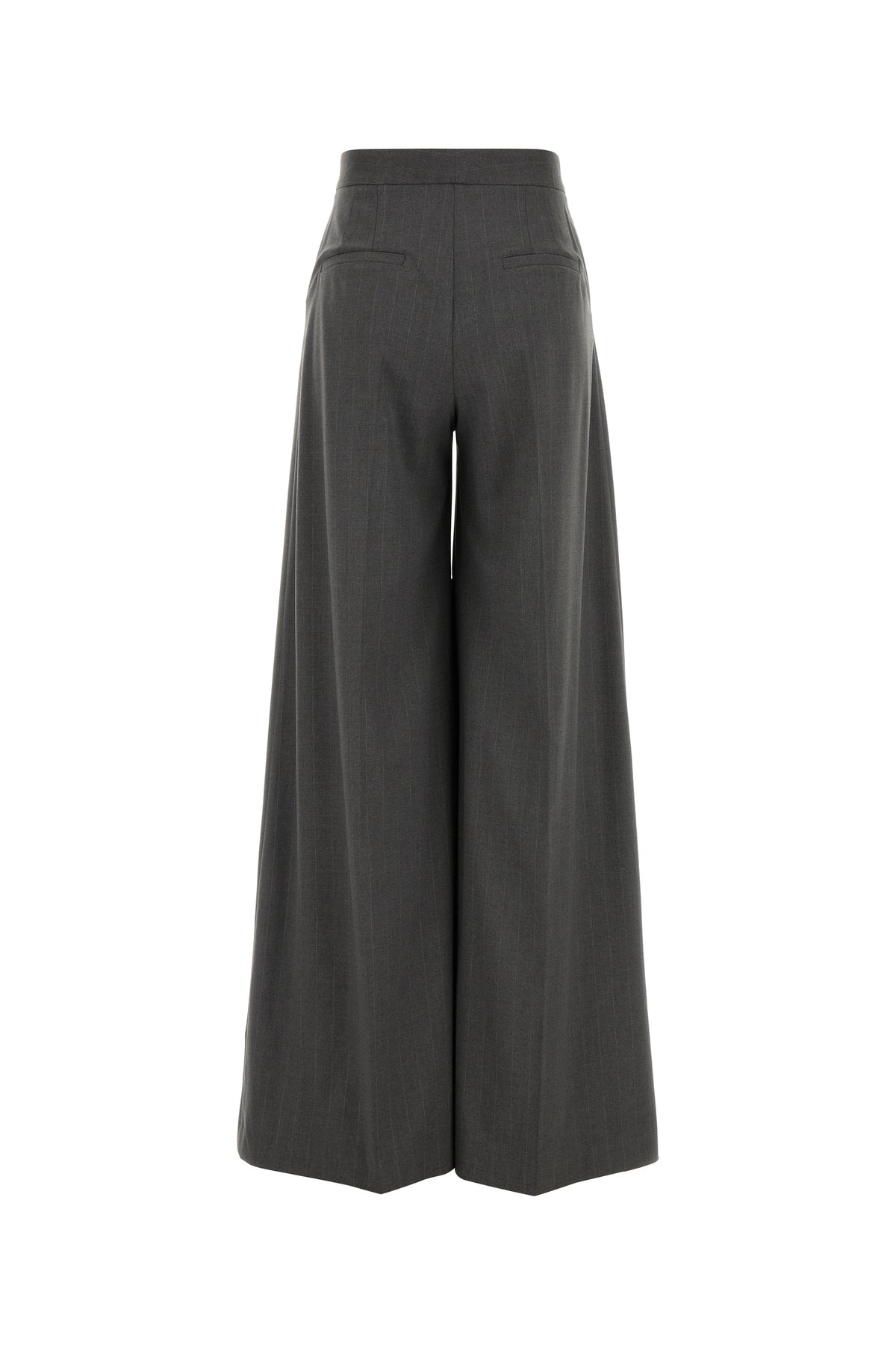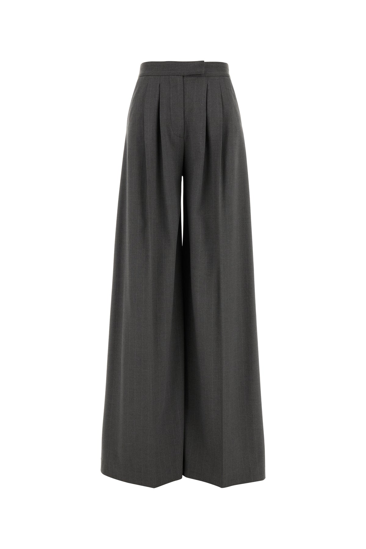 Wide-leg pant realized in stretch polyester blend characterized by pinstriped motif embroidery on the entire surface.