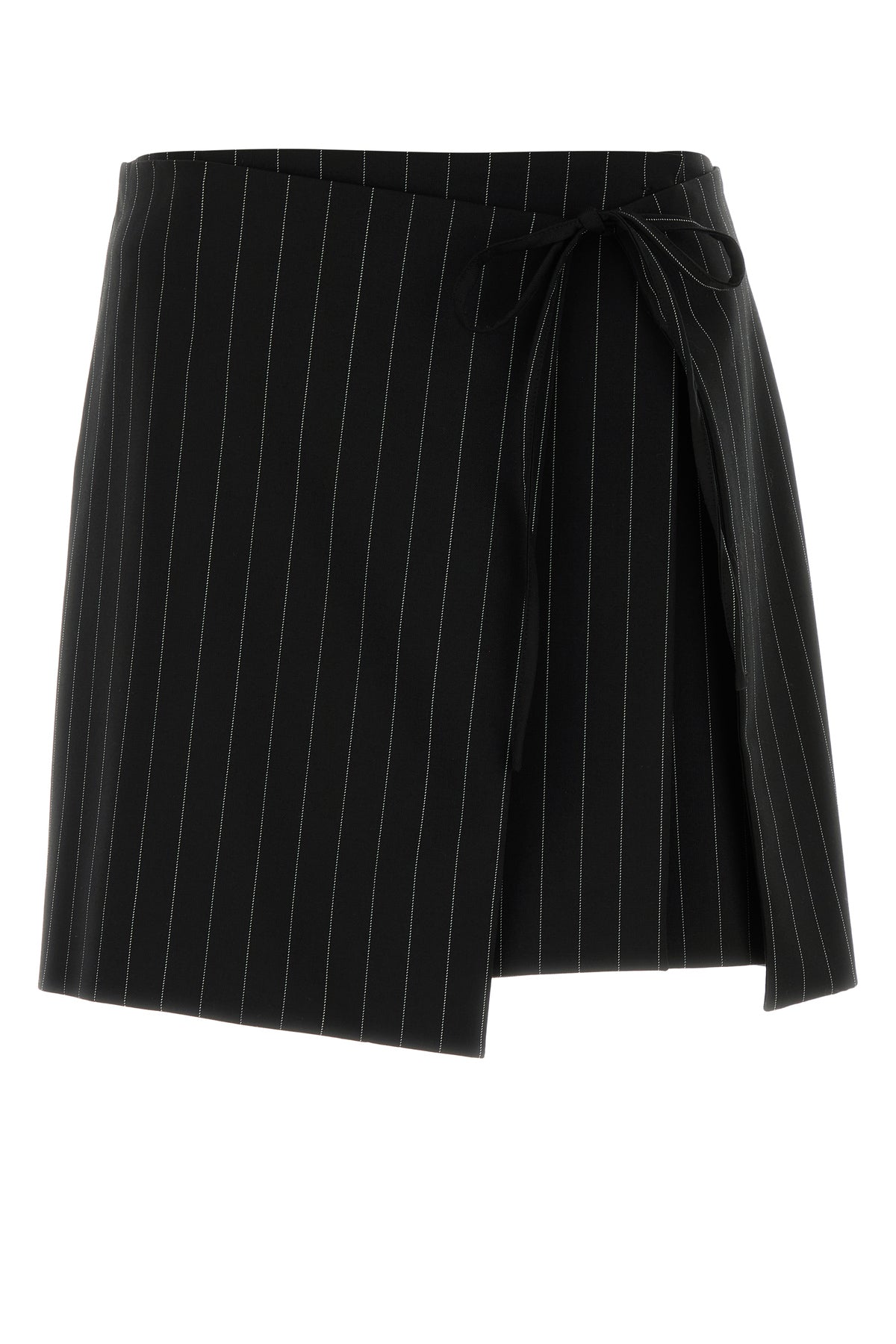 Mini skirt realized in stretch virgin wool blend characterized by pinstriped embroidery on the entire surface.