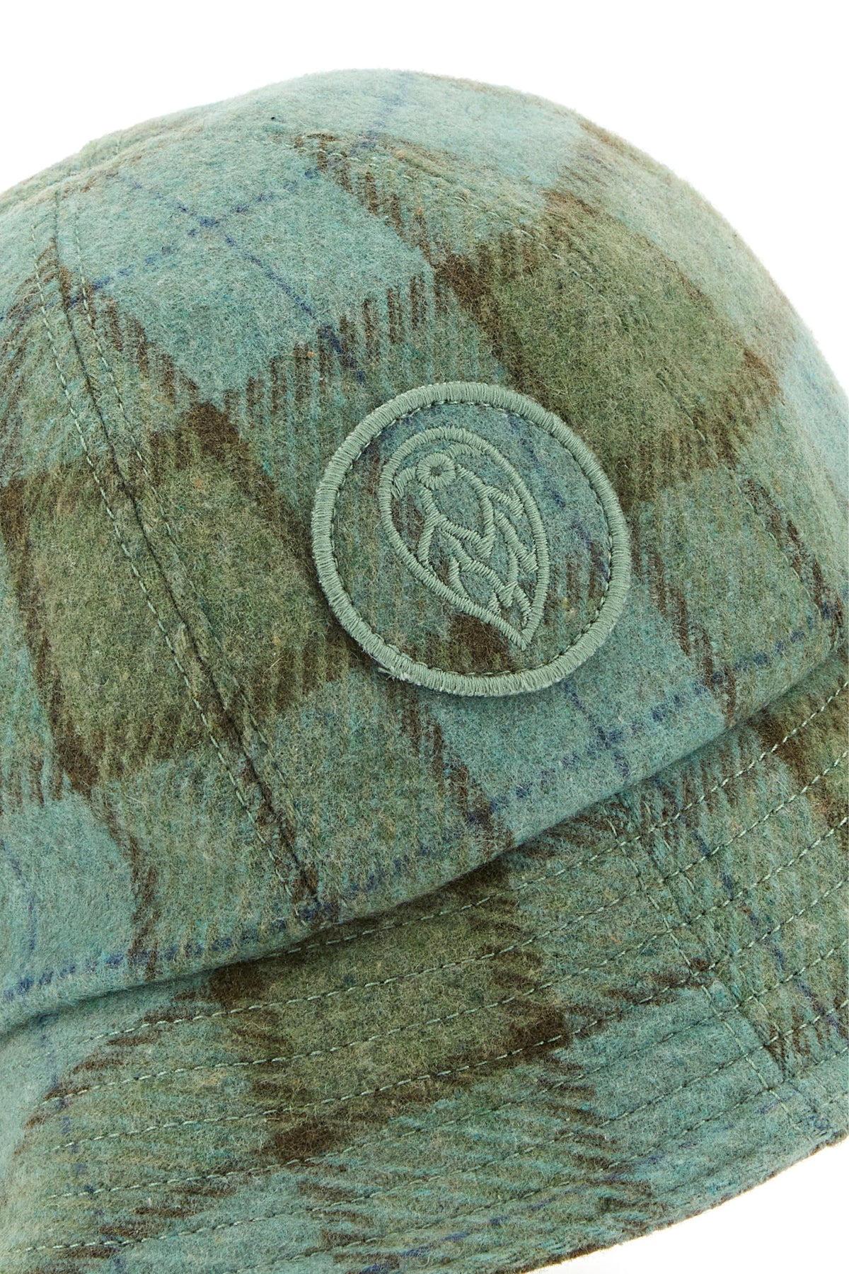 Bucket hat realized in recycled wool blend characterized by checkered embroidery on the entire surface enriched by logoed patch at the front.