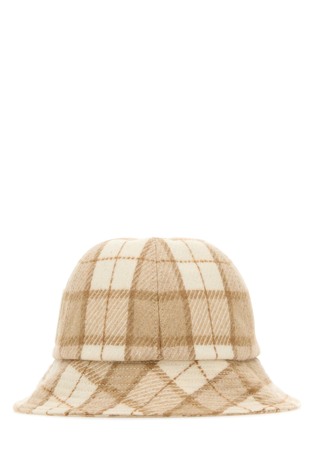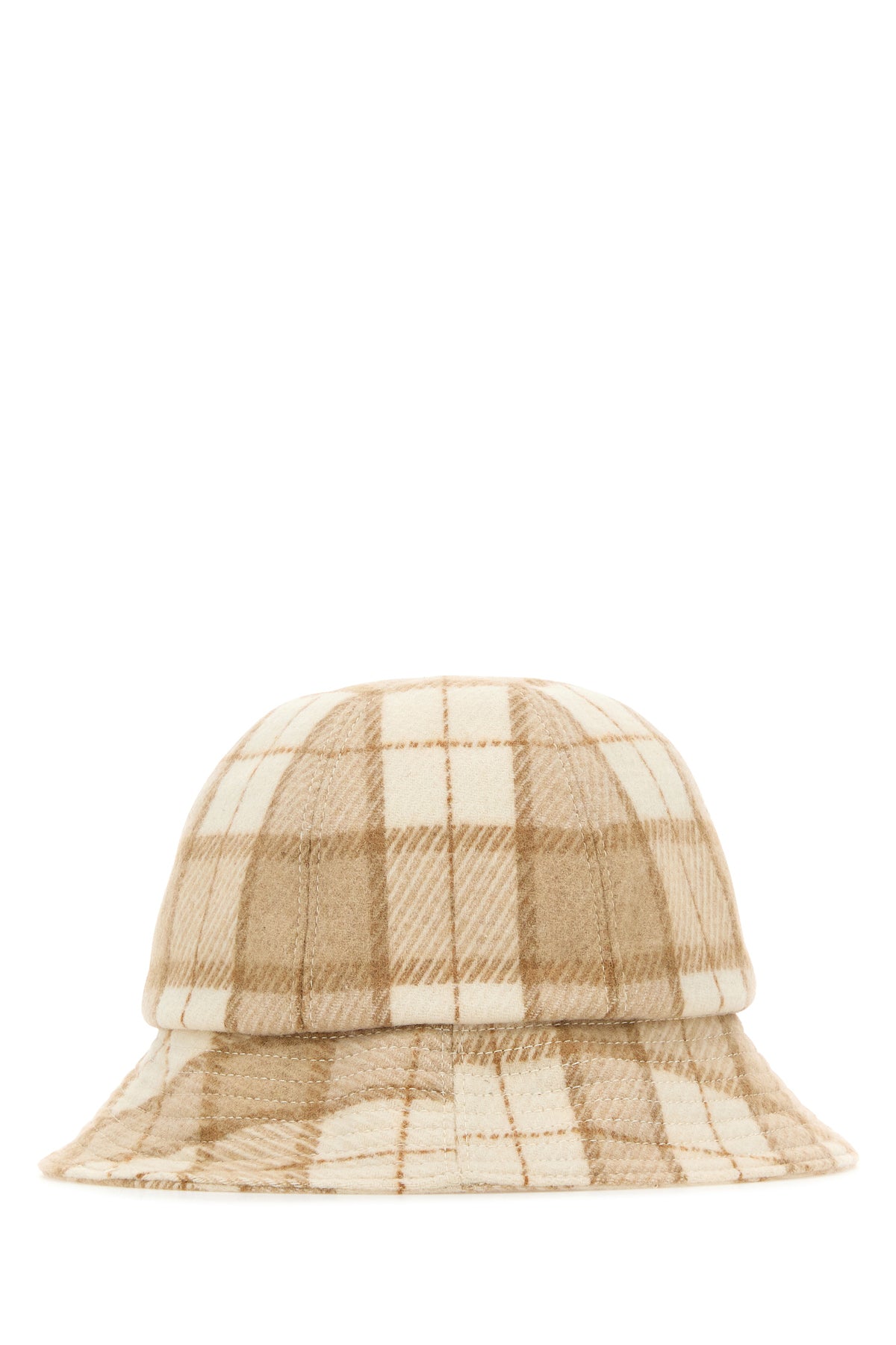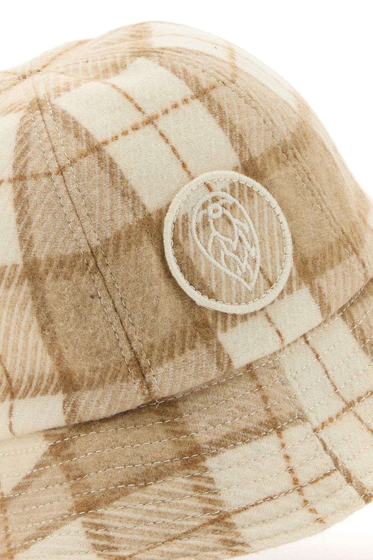 Bucket hat realized in recycled wool blend characterized by checkered embroidery on the entire surface enriched by logoed patch at the front.