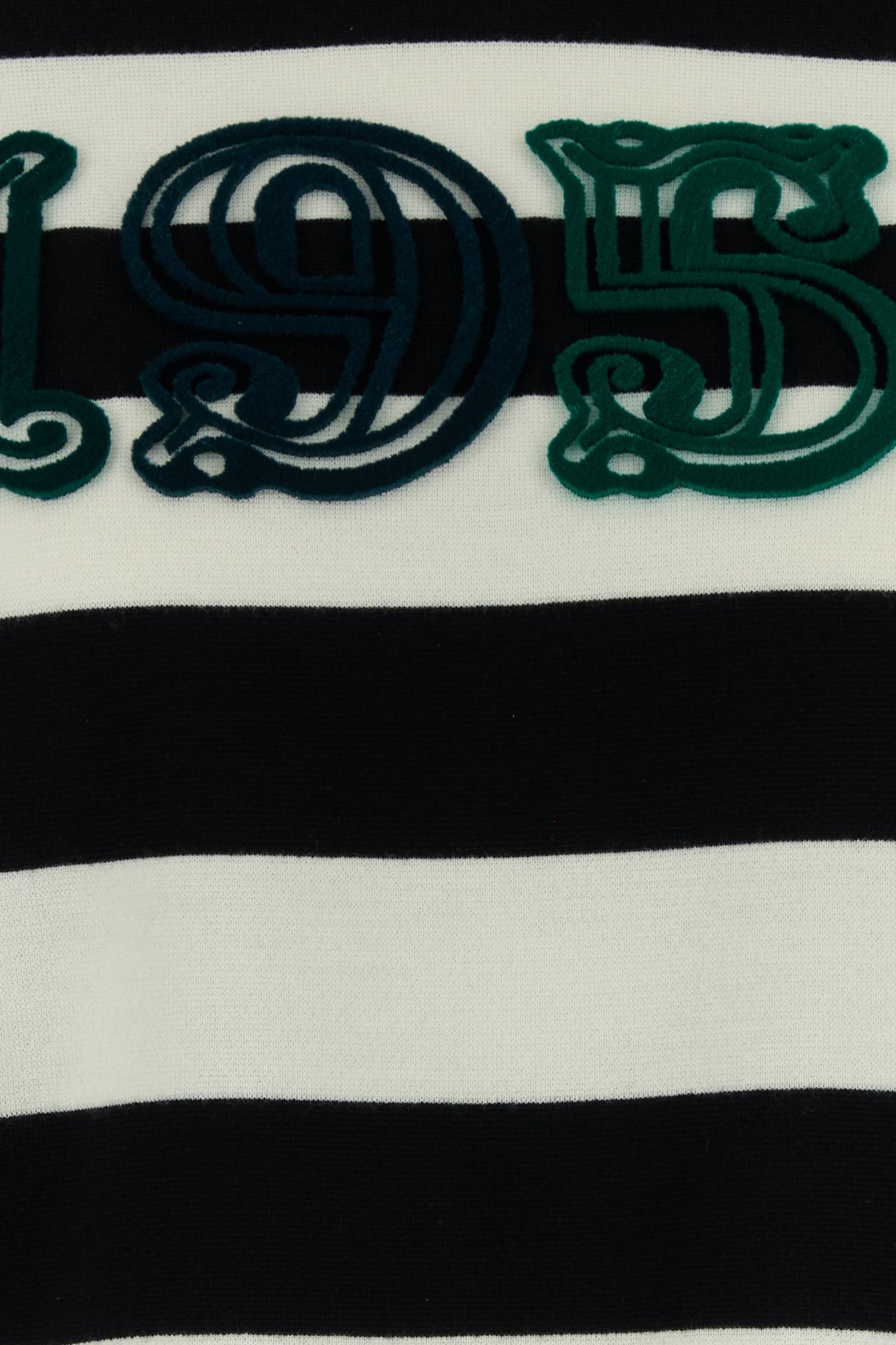 Sweater realized in pure virgin wool characterized by striped embroidery on the entire surface enriched by flocked 1951 patch at the front.