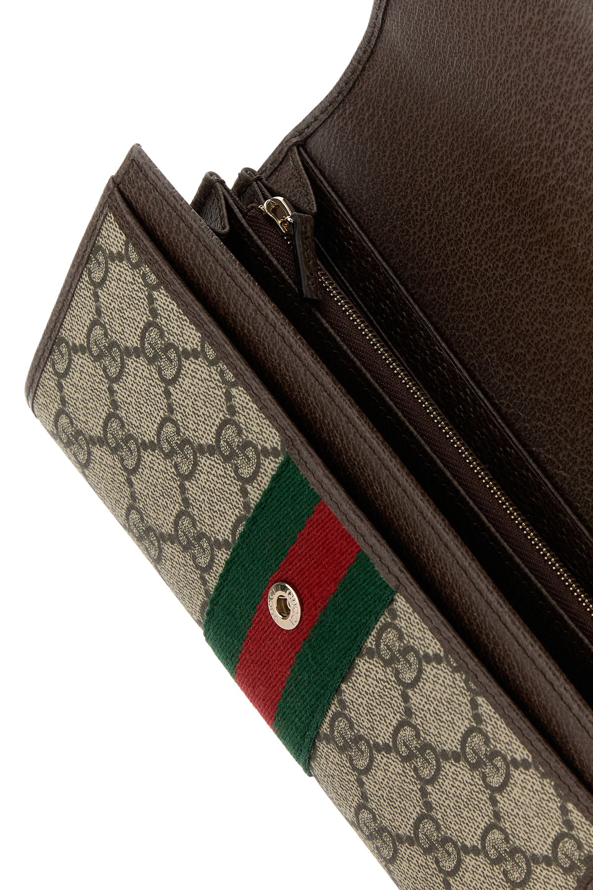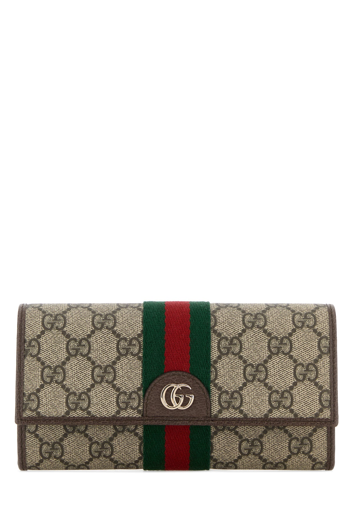 Wallet realized in GG Supreme fabric with leather trimmings enriched by Web ribbon and metal GG detail at the front.