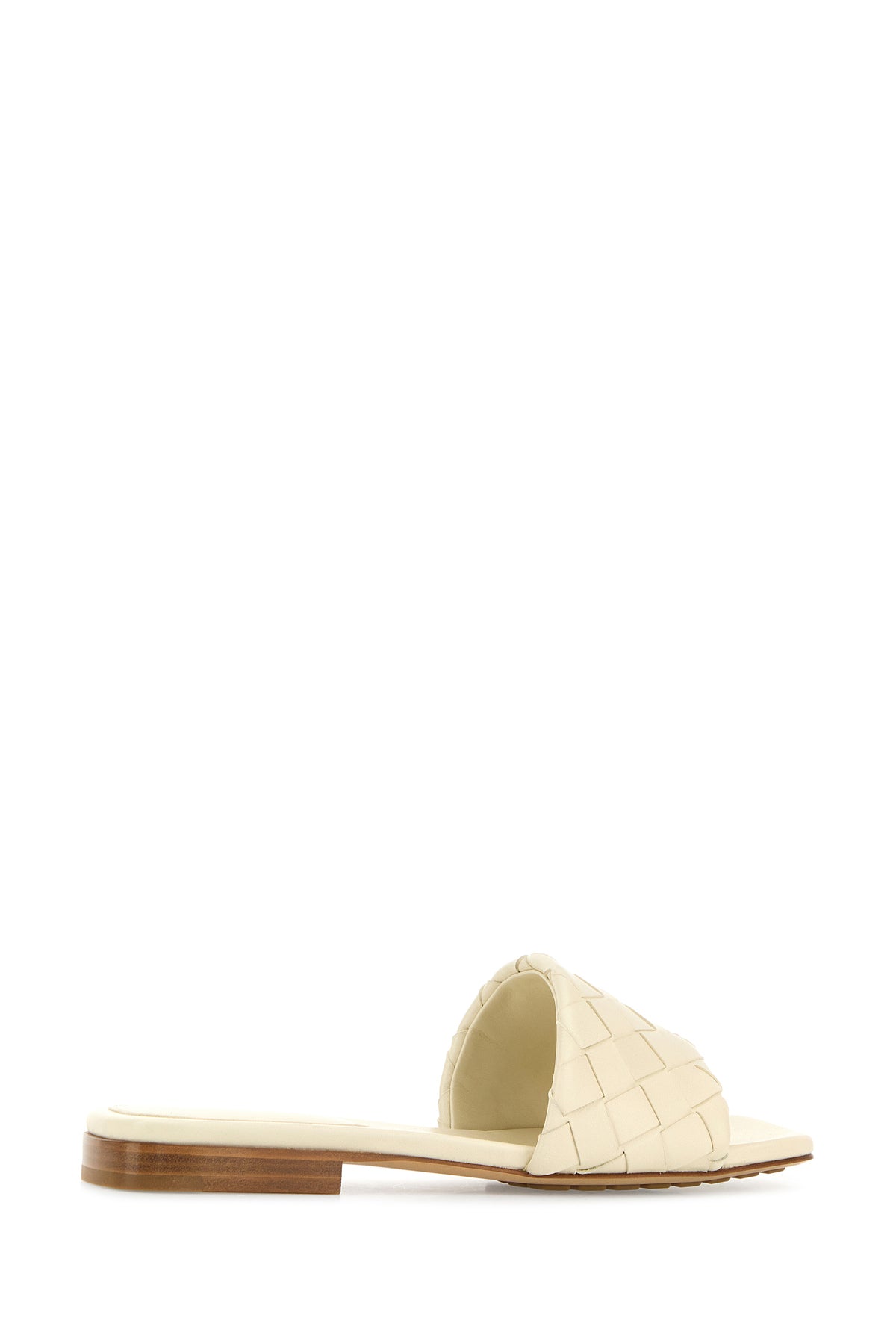 Slippers realized in lamb leather characterized by iconic Intrecciato motif on the instep.