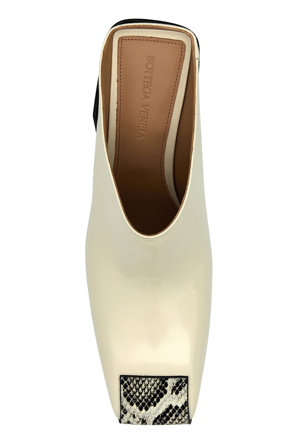 Mules realized in smooth leather enriched by animal print on the squared toe.