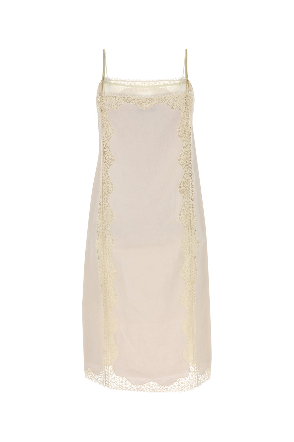 Dress realized in pure linen with lace insert enriched by iconic lace triangle on the chest.