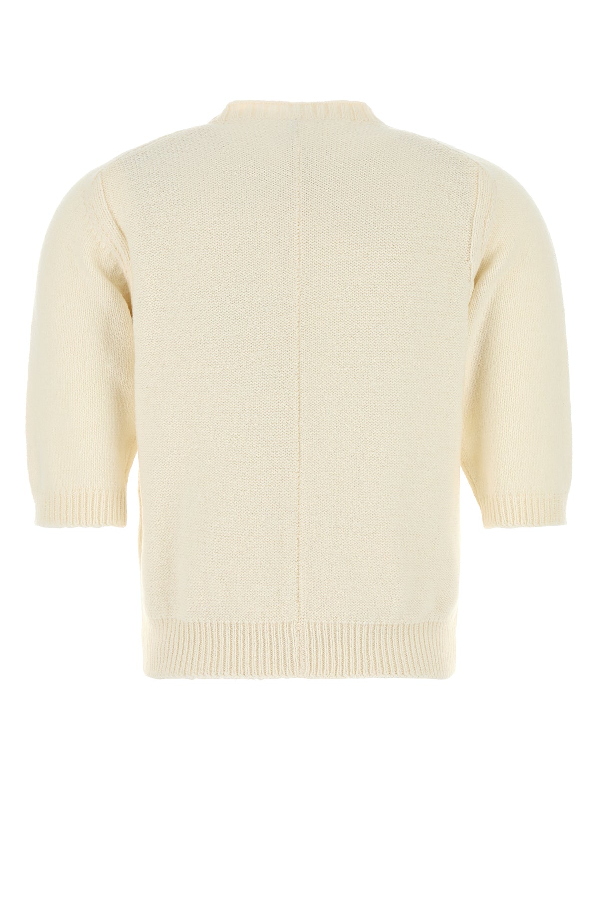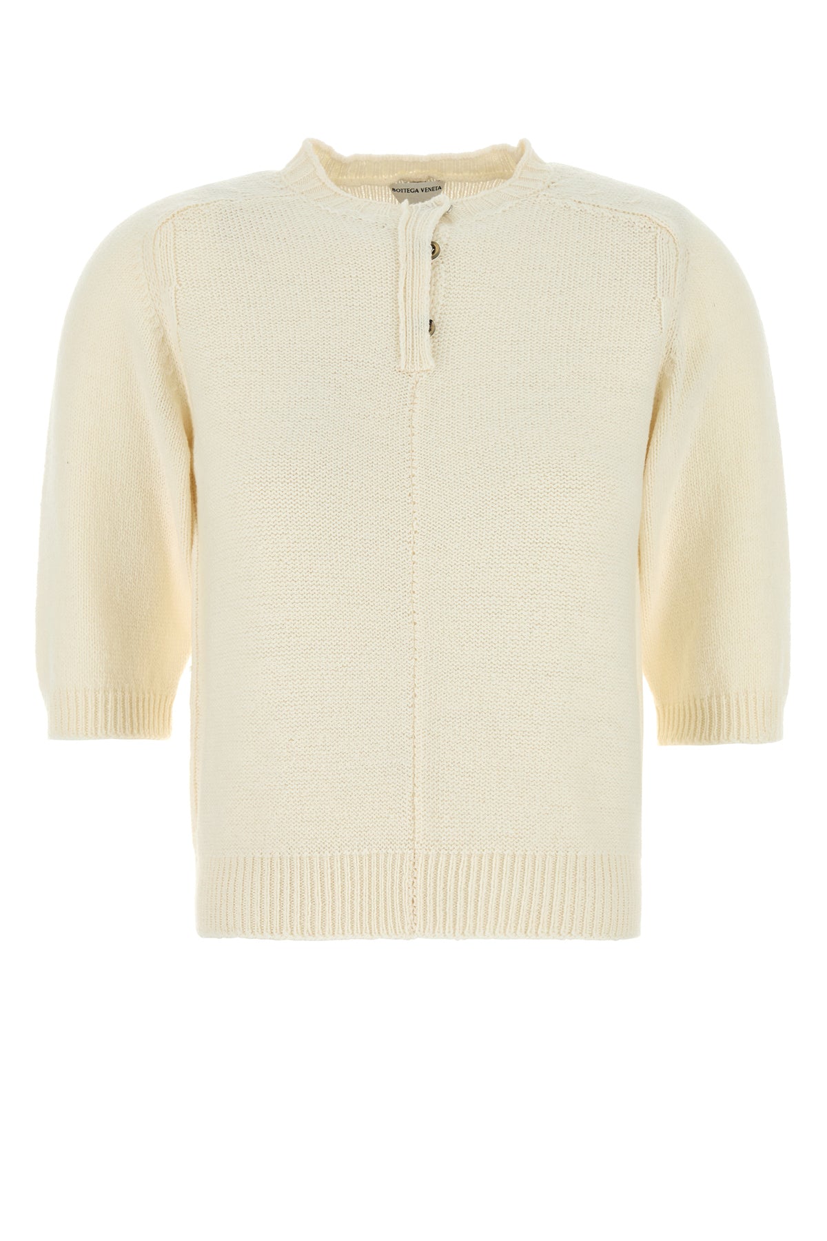Short-sleeve sweater realized in pure wool characterized by partial buttons closure.