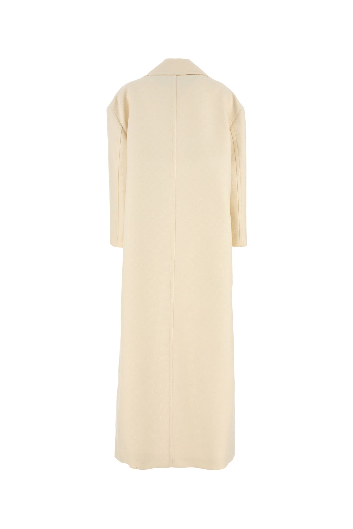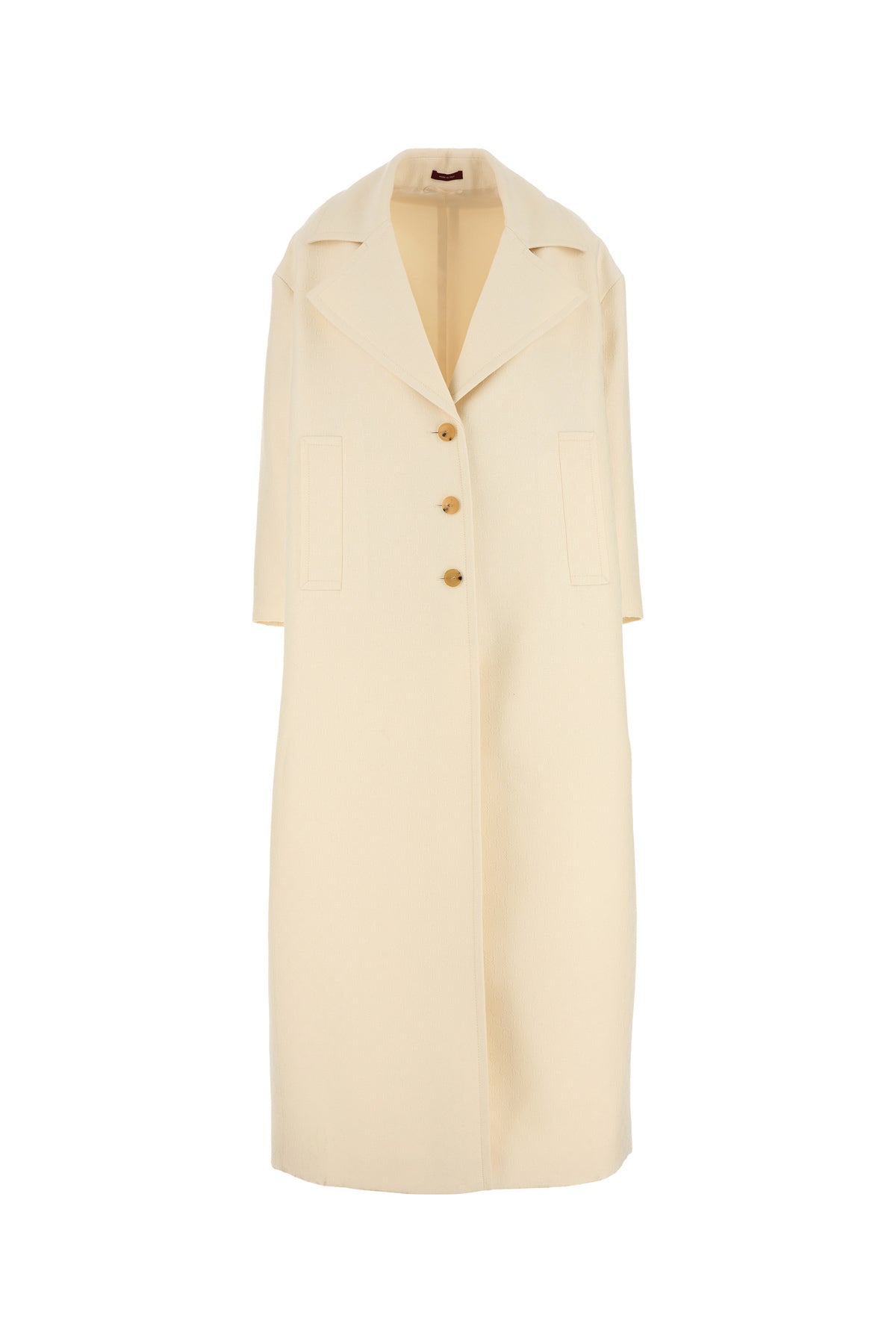 Long-cut coat realized in wool and silk characterized by tonal GG motif embroidery on the entire surface.