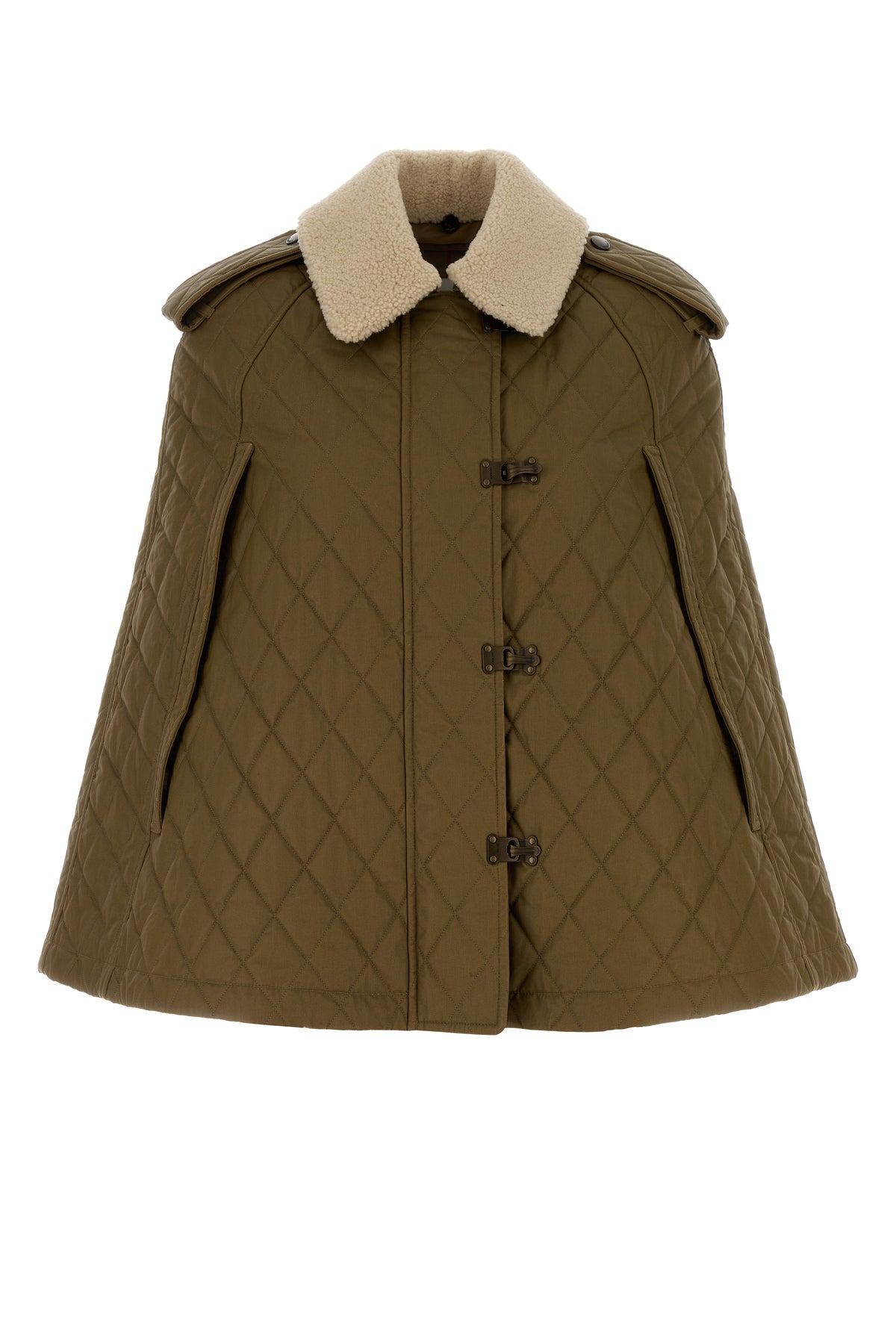 Cape realized in quilted pure cotton characterized by teddy collar.