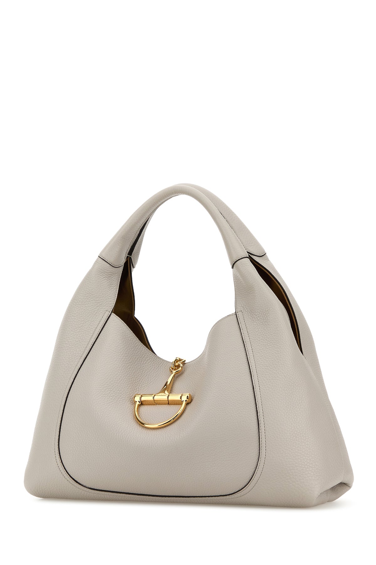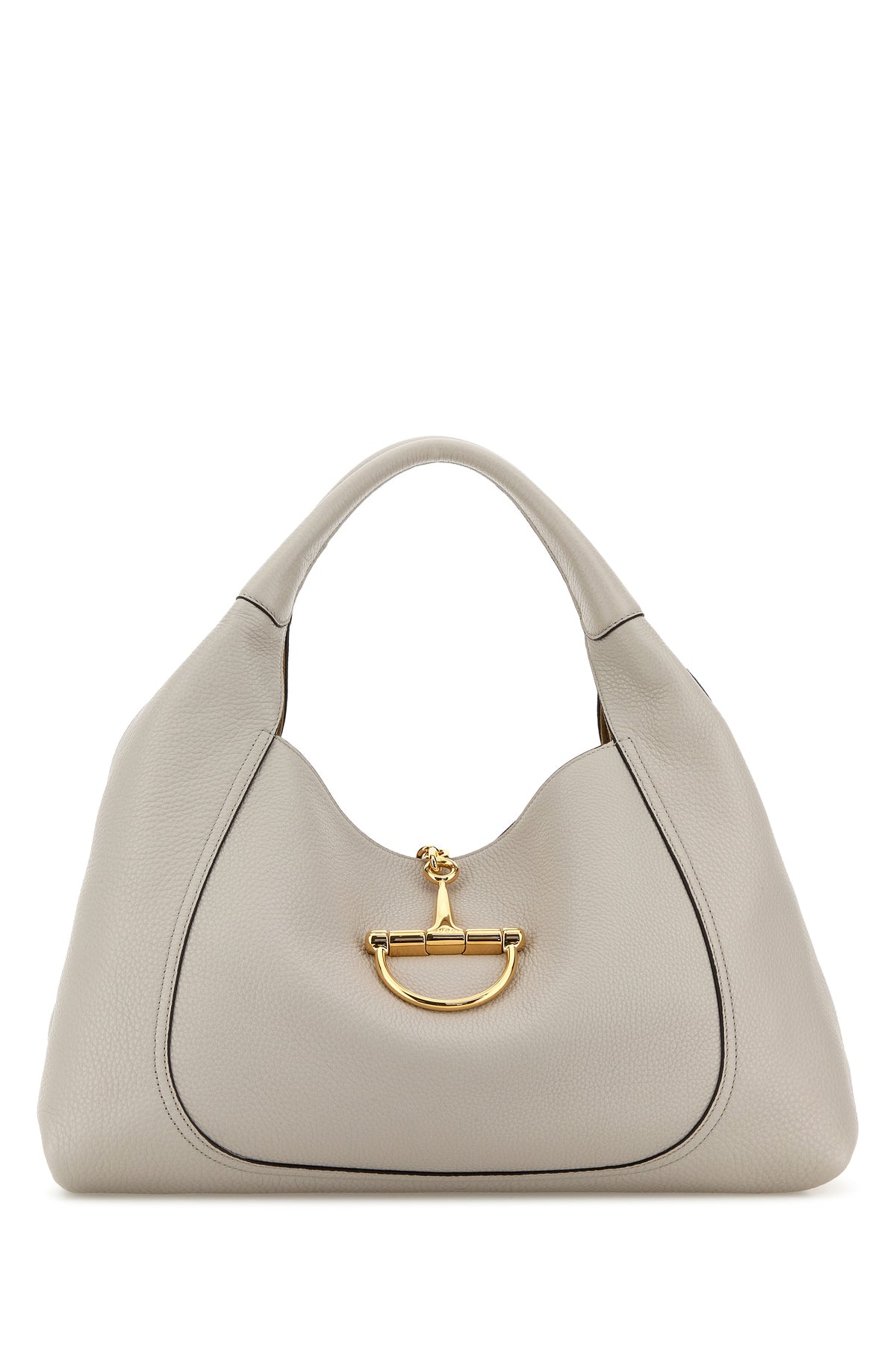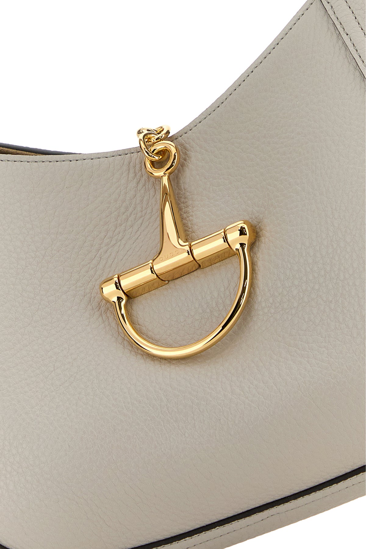 Shoulder bag realized in pebble leather enriched metal maxi Horsebit closure at the front.