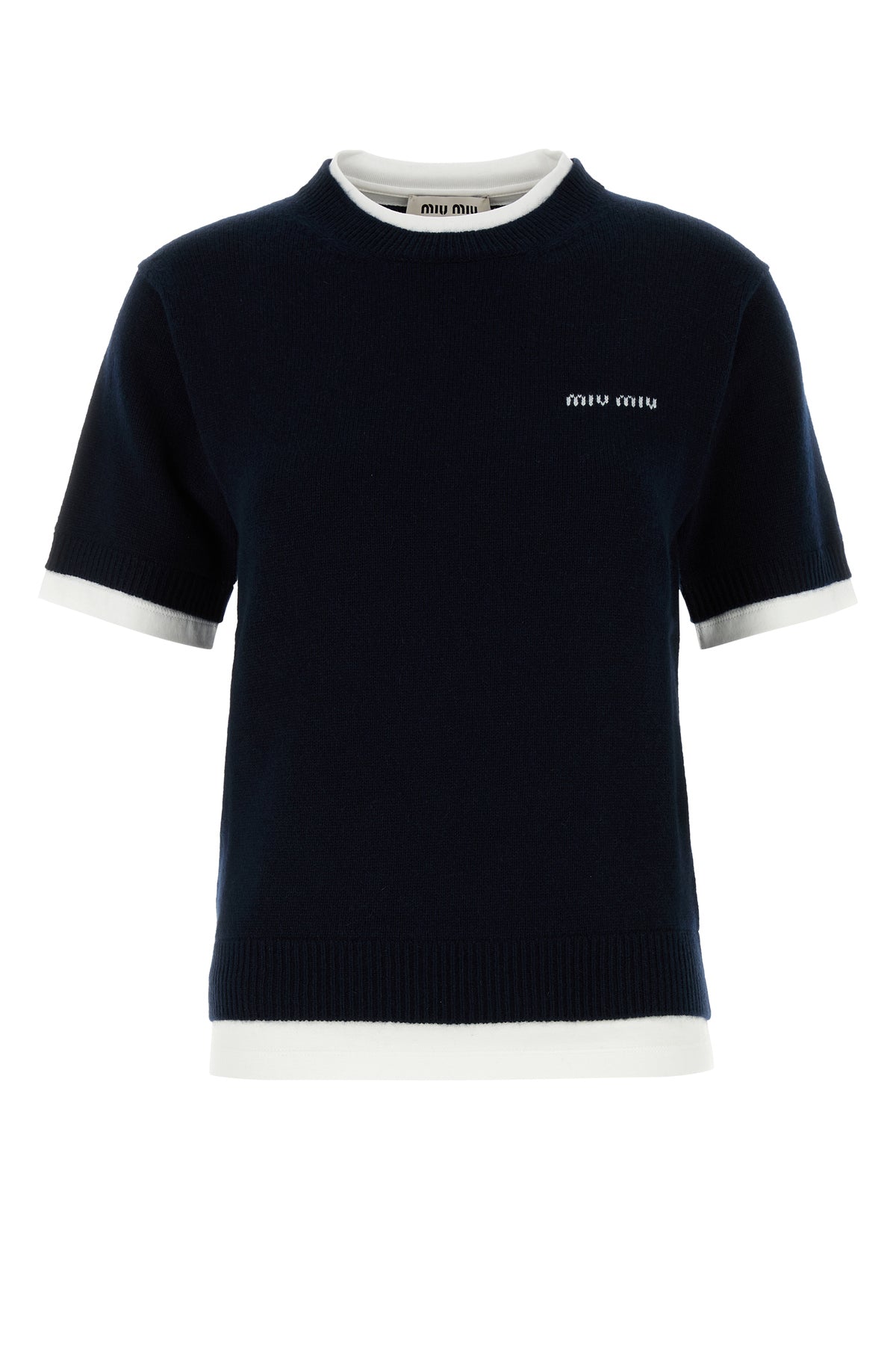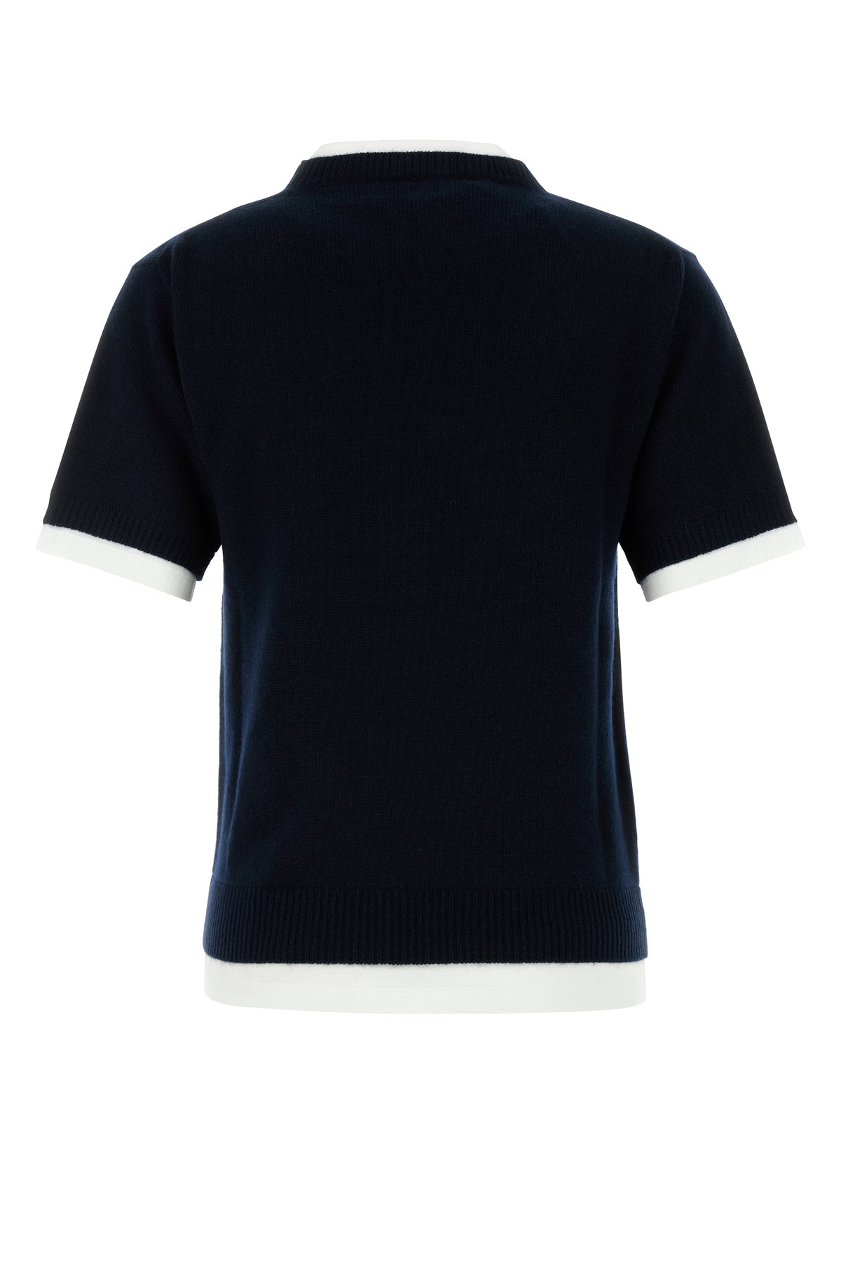 Short-sleeves sweater realized in pure cashmere characterized by contrasting embroidered logo on the chest.