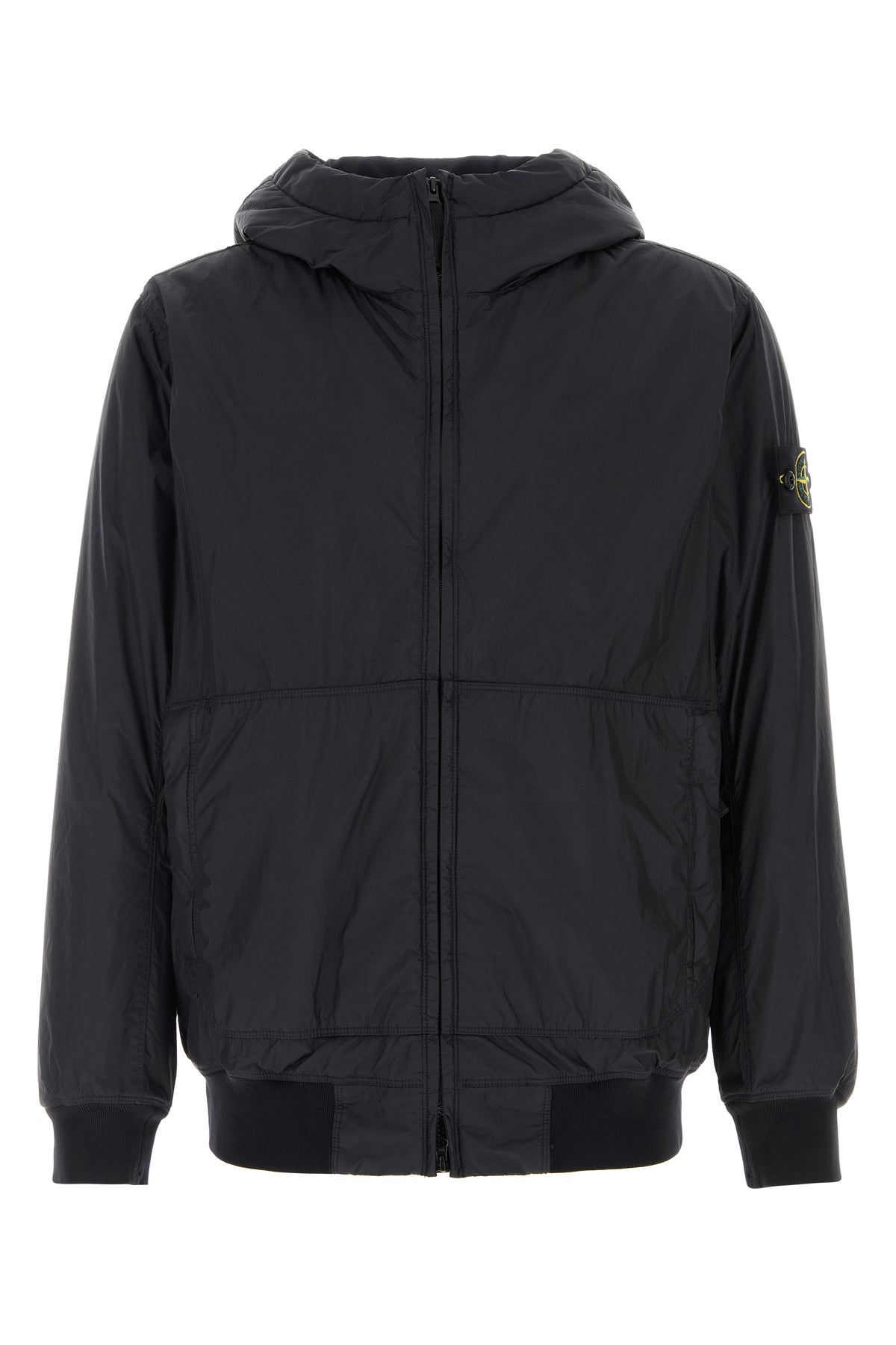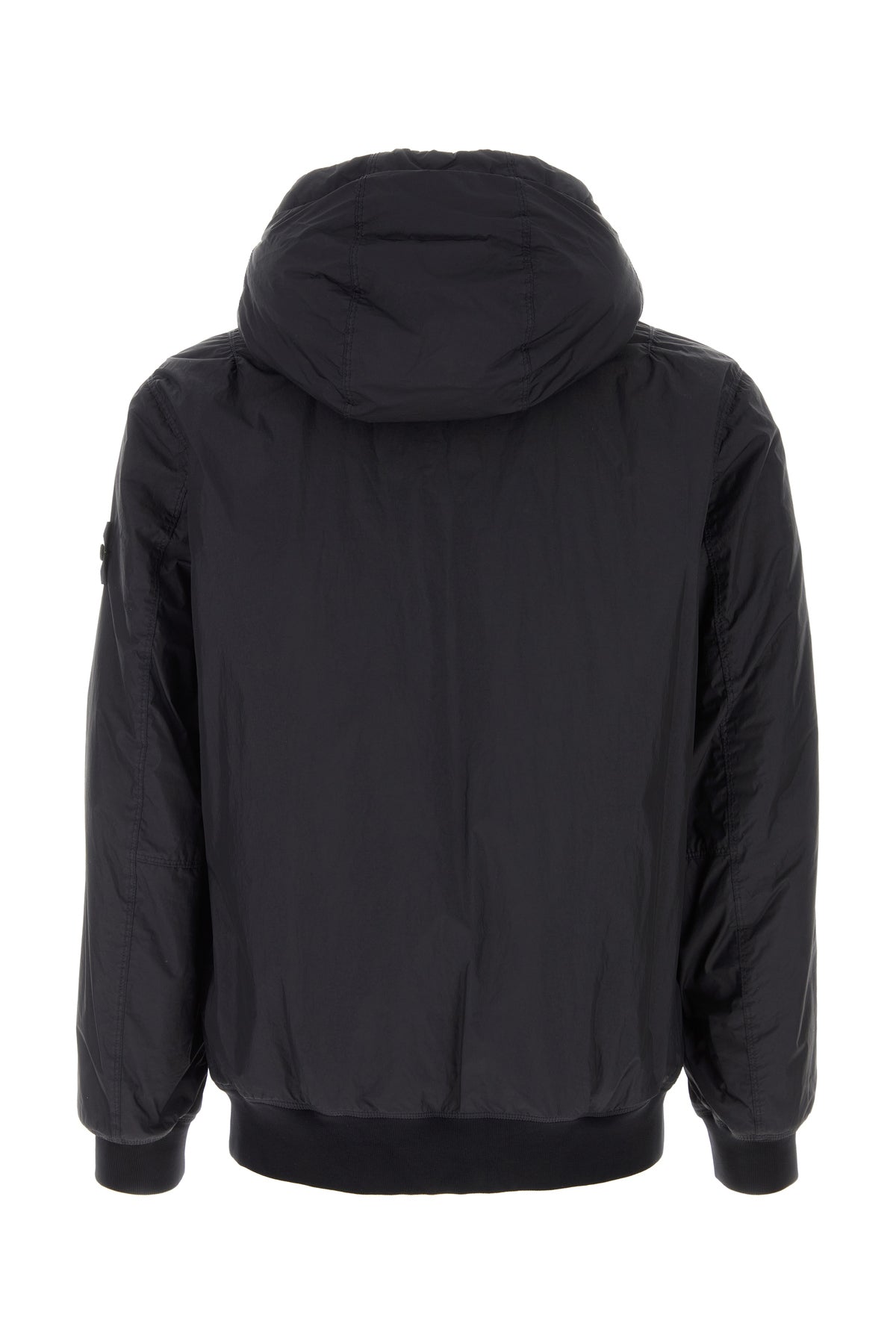 Slightly padded jacket realized in nylon enriched by detachable logoed patch on the sleeve.