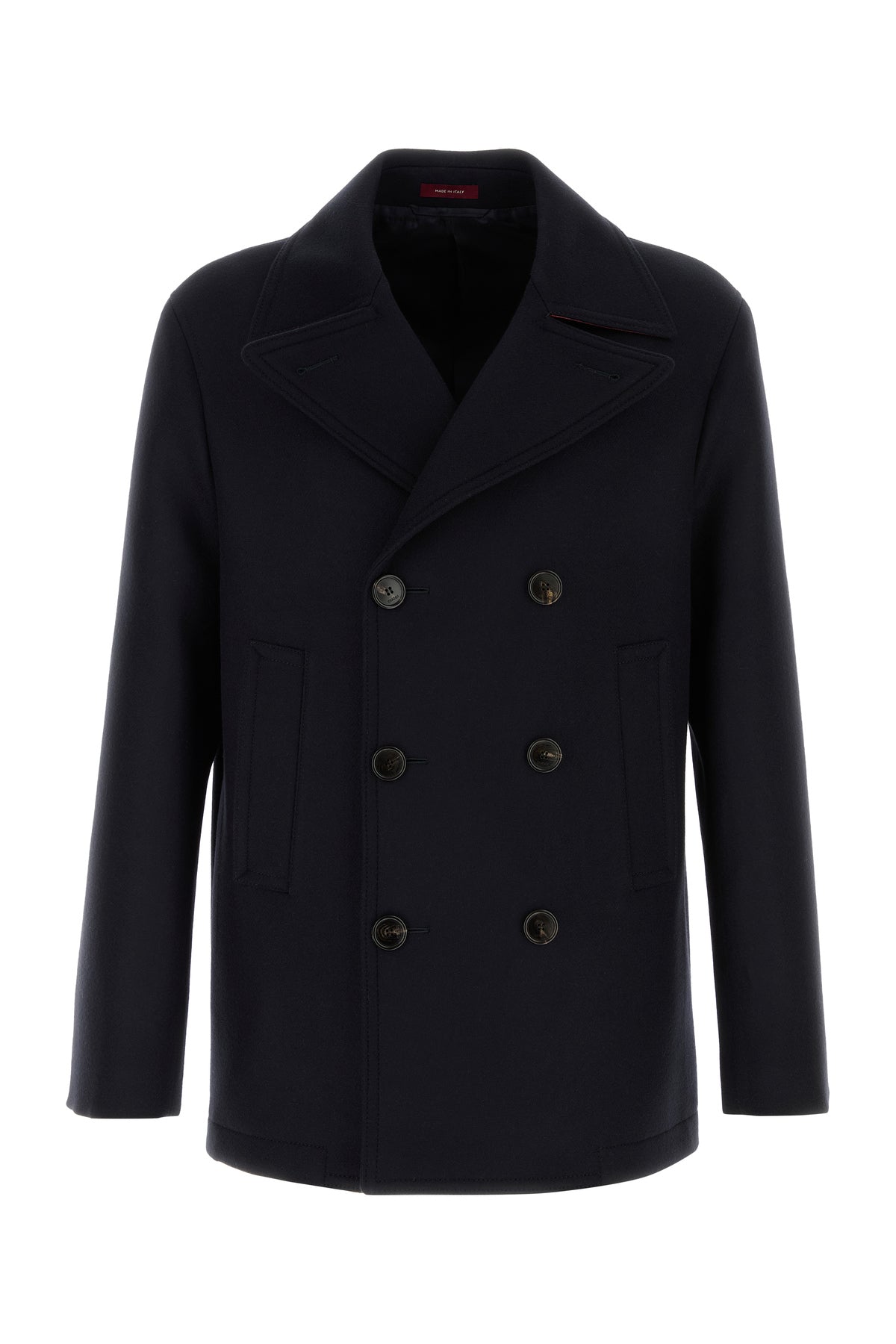 Coat realized in pure wool characterized by lapels.